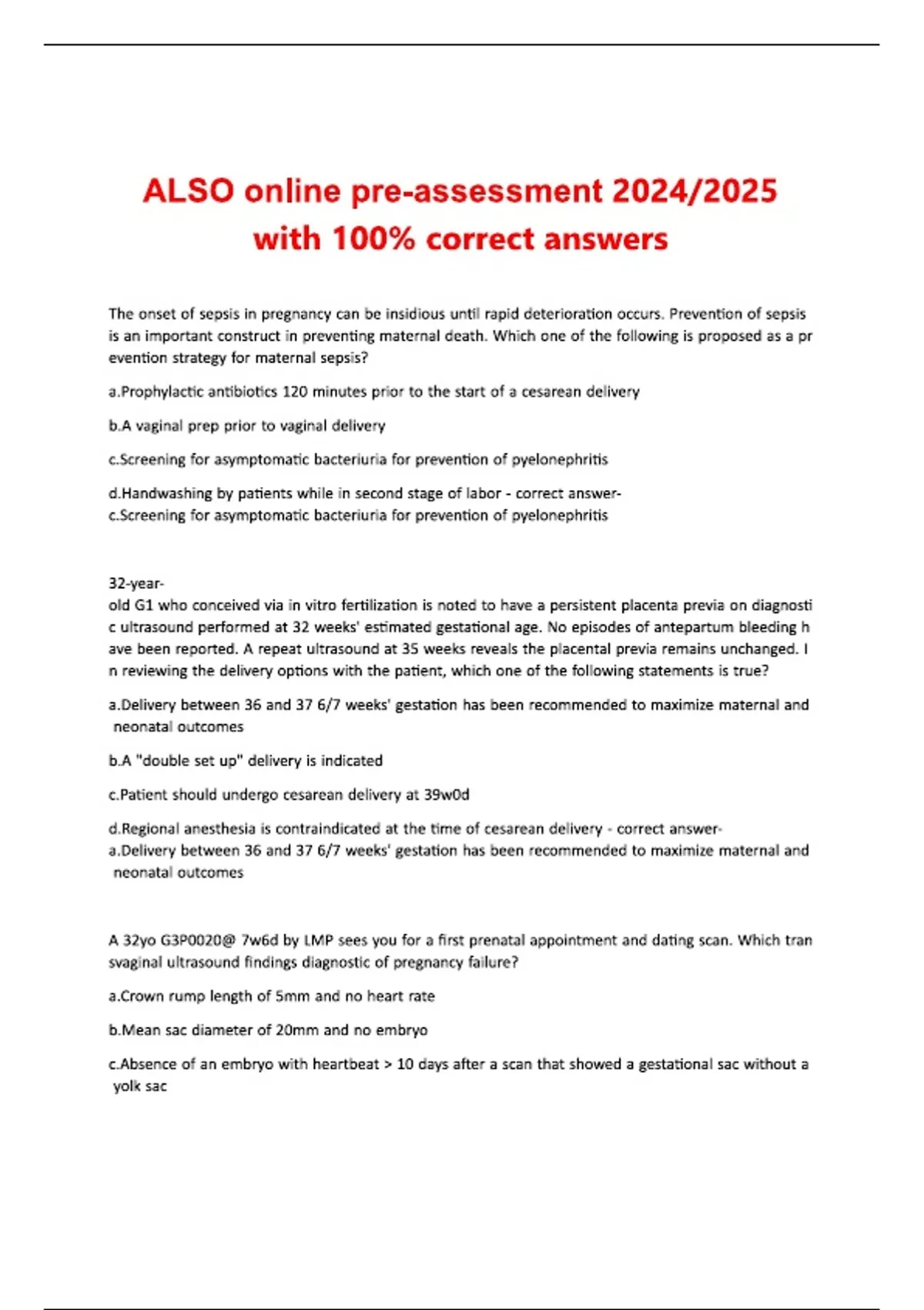 ALSO online pre-assessment with 100%- correct answers.