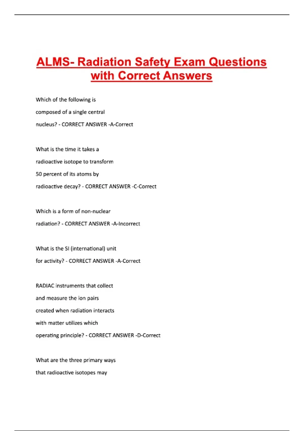 ALMS- Radiation Safety Exam Questions with Correct Answers.