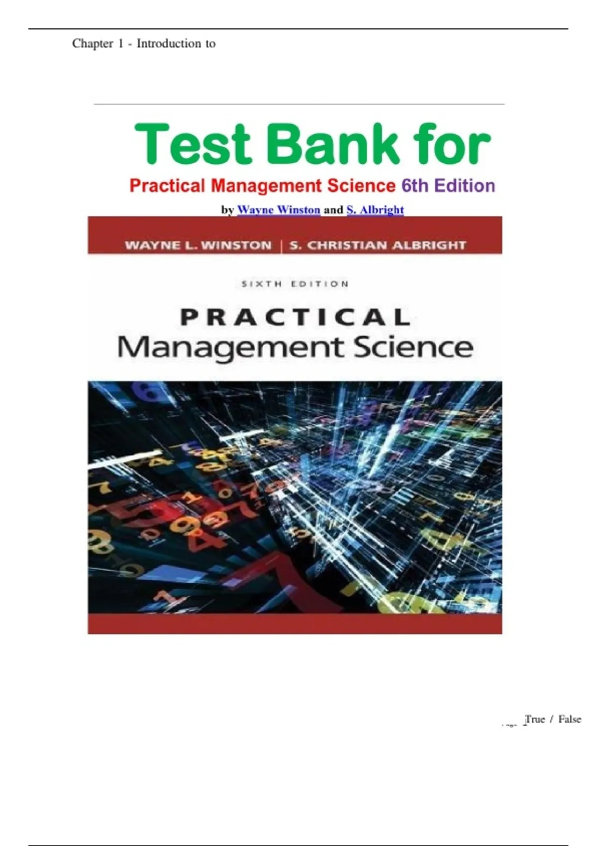 FULL TEST BANK For Practical Management Science 6th Edition by Wayne Winston Latest Update Graded A+