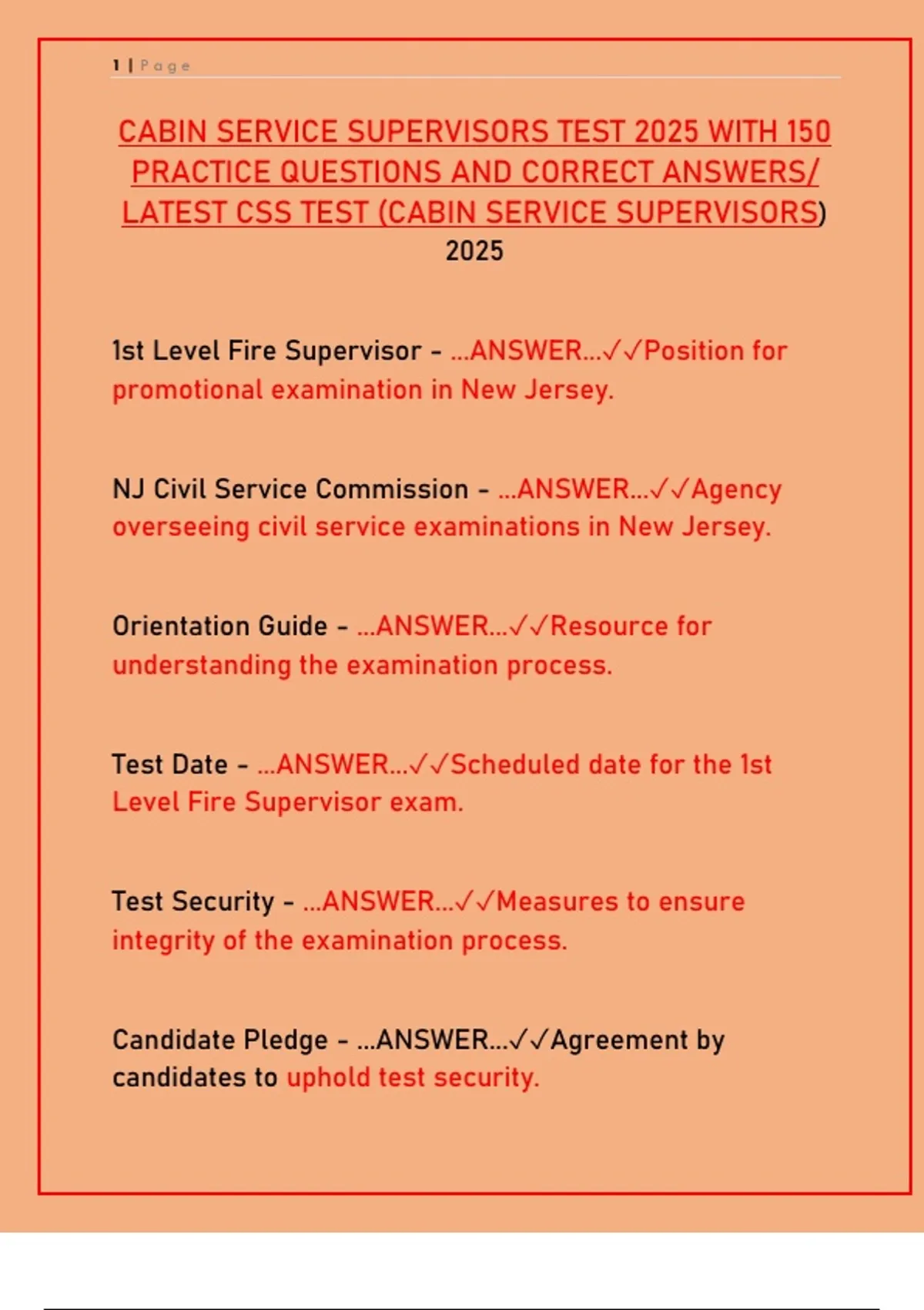 CABIN SERVICE SUPERVISORS TEST 2025 WITH 150