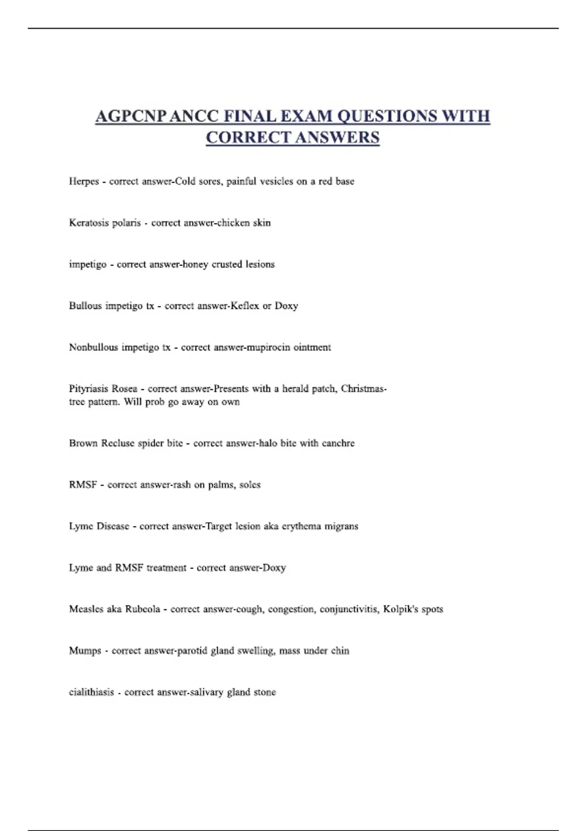 AGPCNP ANCC FINAL EXAM QUESTIONS WITH CORRECT ANSWERS.