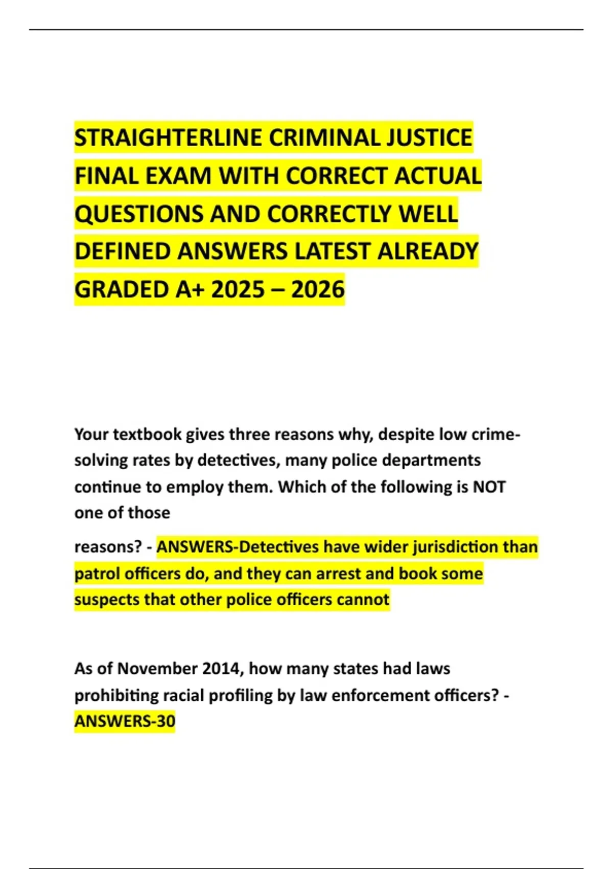 STRAIGHTERLINE CRIMINAL JUSTICE FINAL EXAM WITH CORRECT ACTUAL QUESTIONS AND CORRECTLY WELL DEFINED ANSWERS LATEST ALREADY GRADED A+ 2025 – 2026