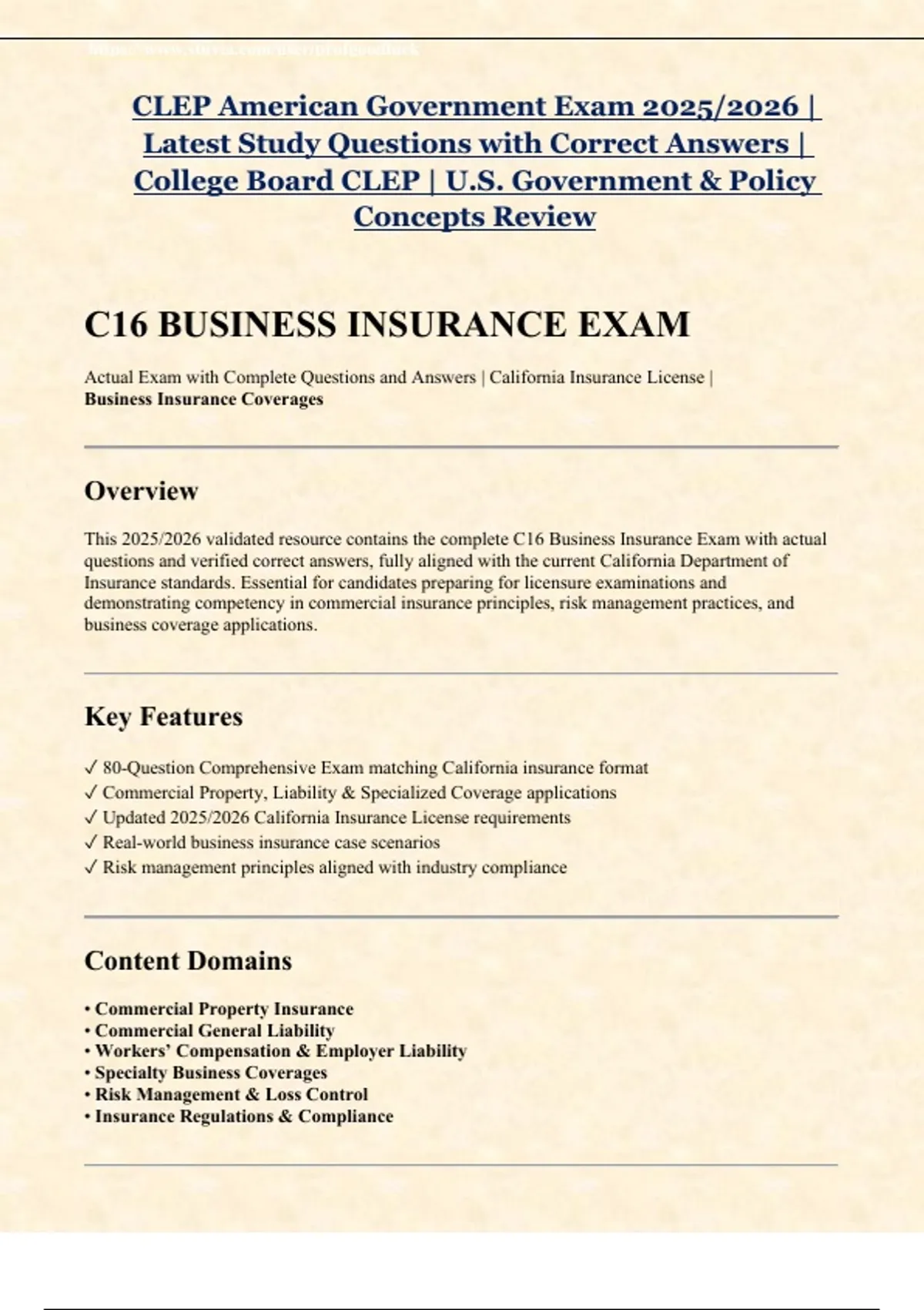This 2025/2026 validated resource contains the complete C16 Business Insurance Exam with actual