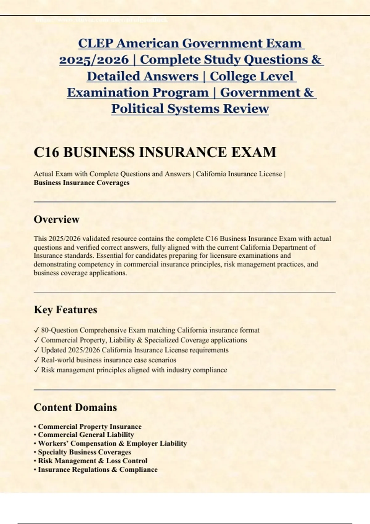 This 2025/2026 validated resource contains the complete C16 Business Insurance Exam with actual