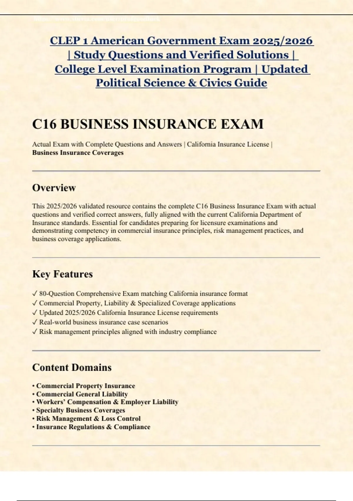 This 2025/2026 validated resource contains the complete C16 Business Insurance Exam with actual