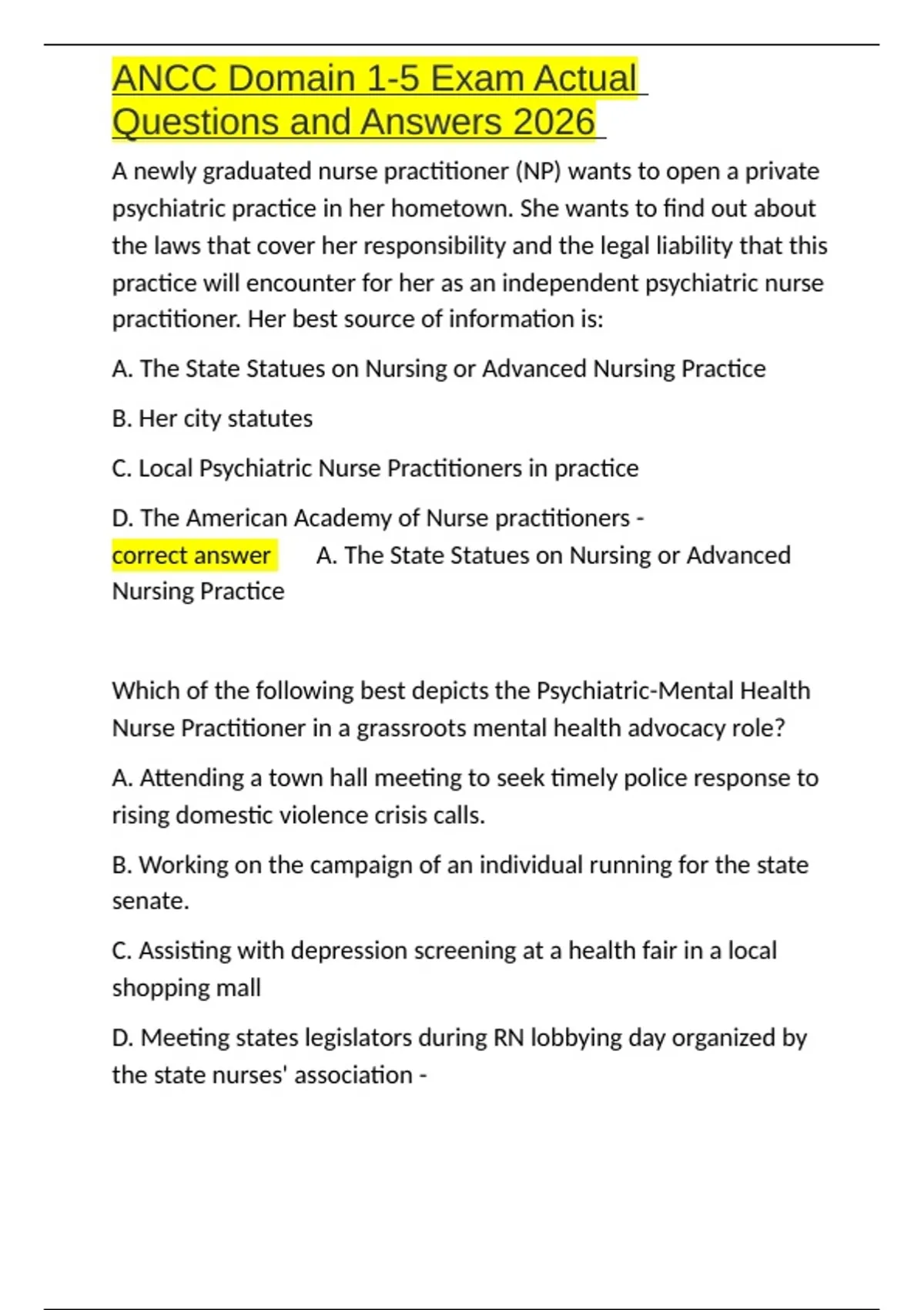 ANCC Domain 1-5 Exam Actual Questions and Answers
