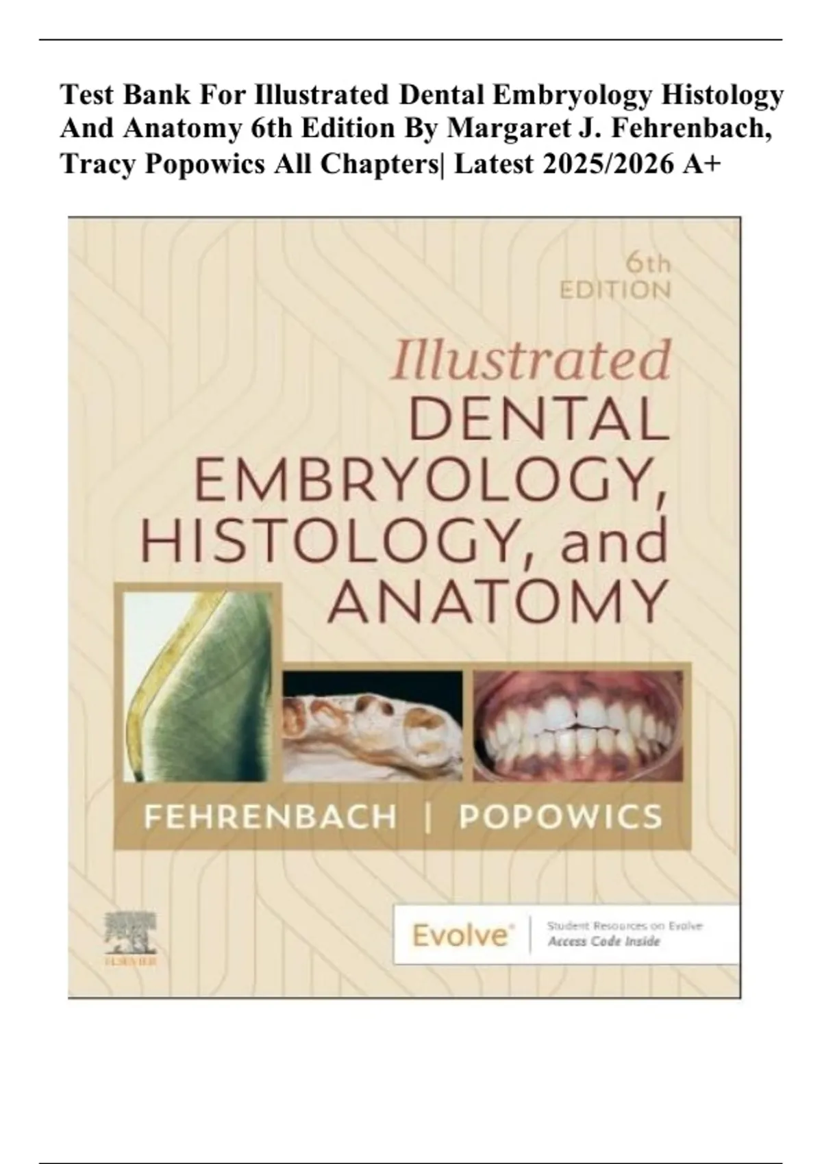 Test Bank For Illustrated Dental Embryology Histology And Anatomy 6th Edition By Margaret J. Fehrenbach, Tracy Popowics All Chapters| Latest 2025/2026 A+