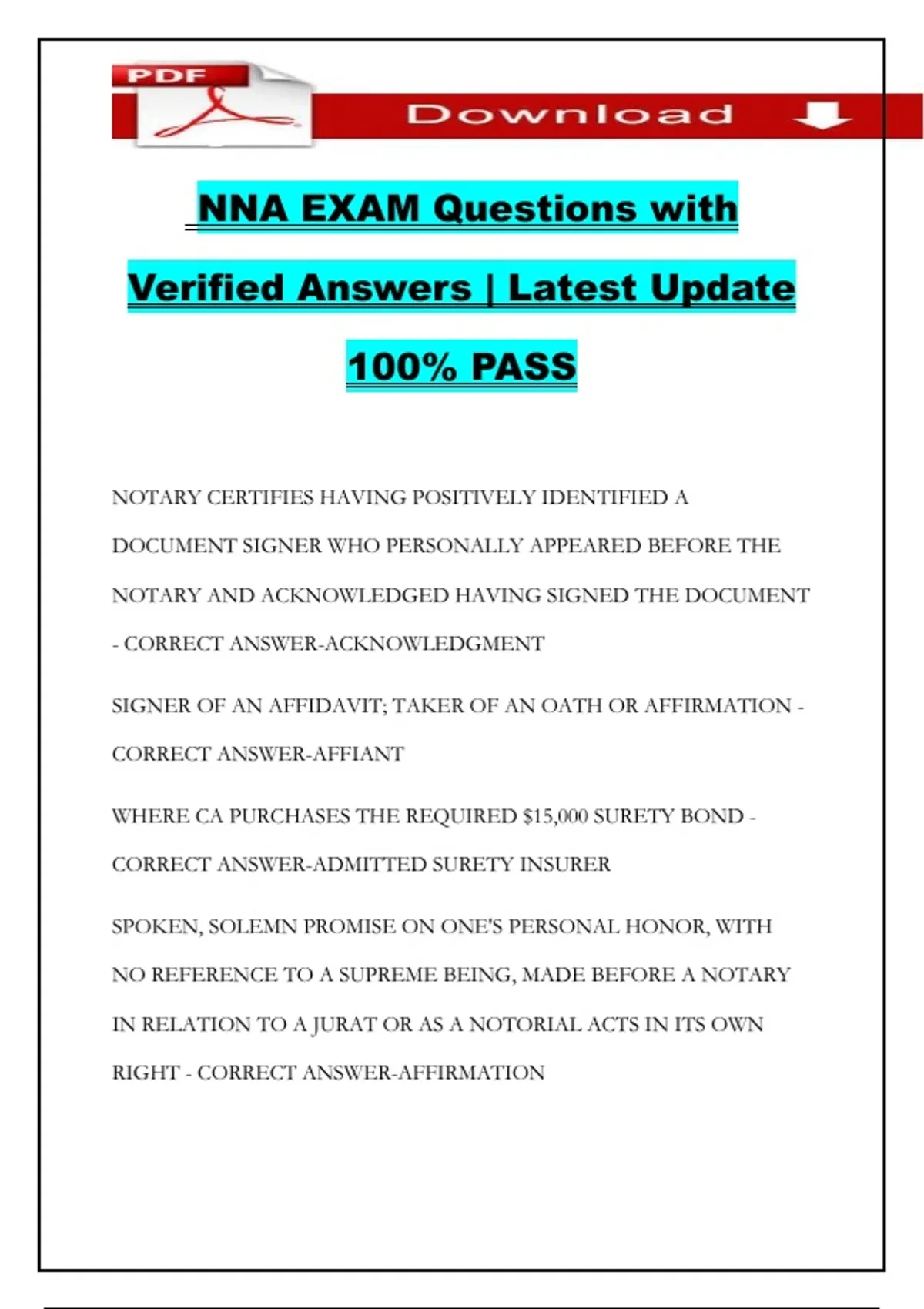 NNA EXAM Questions with