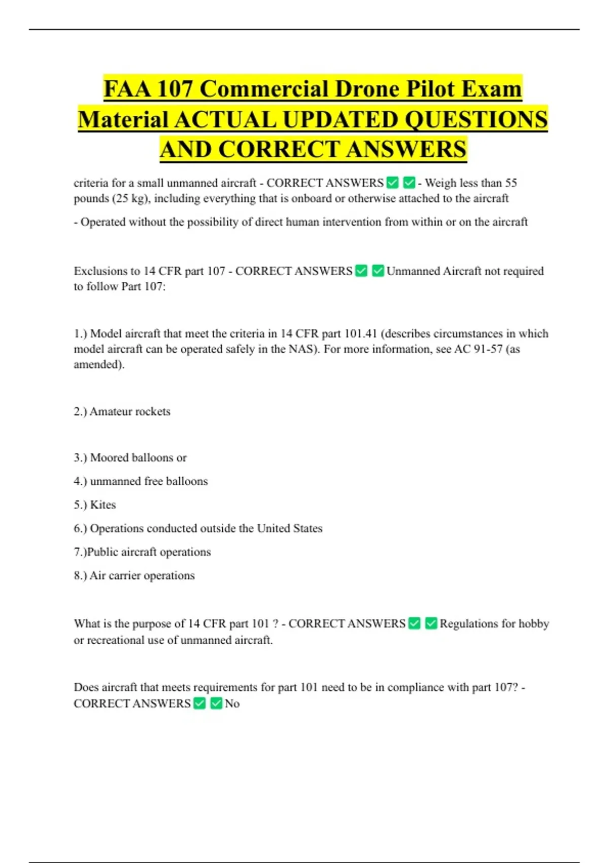 operation subject to 14 CFR part 107? - CORRECT ANSWERS No, this small UAS