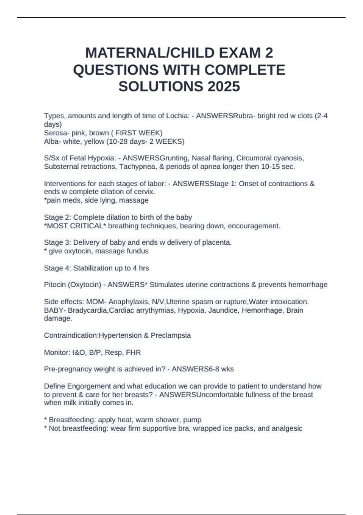 Pitocin (Oxytocin) - ANSWERS* Stimulates uterine contractions & prevents hemorrhage