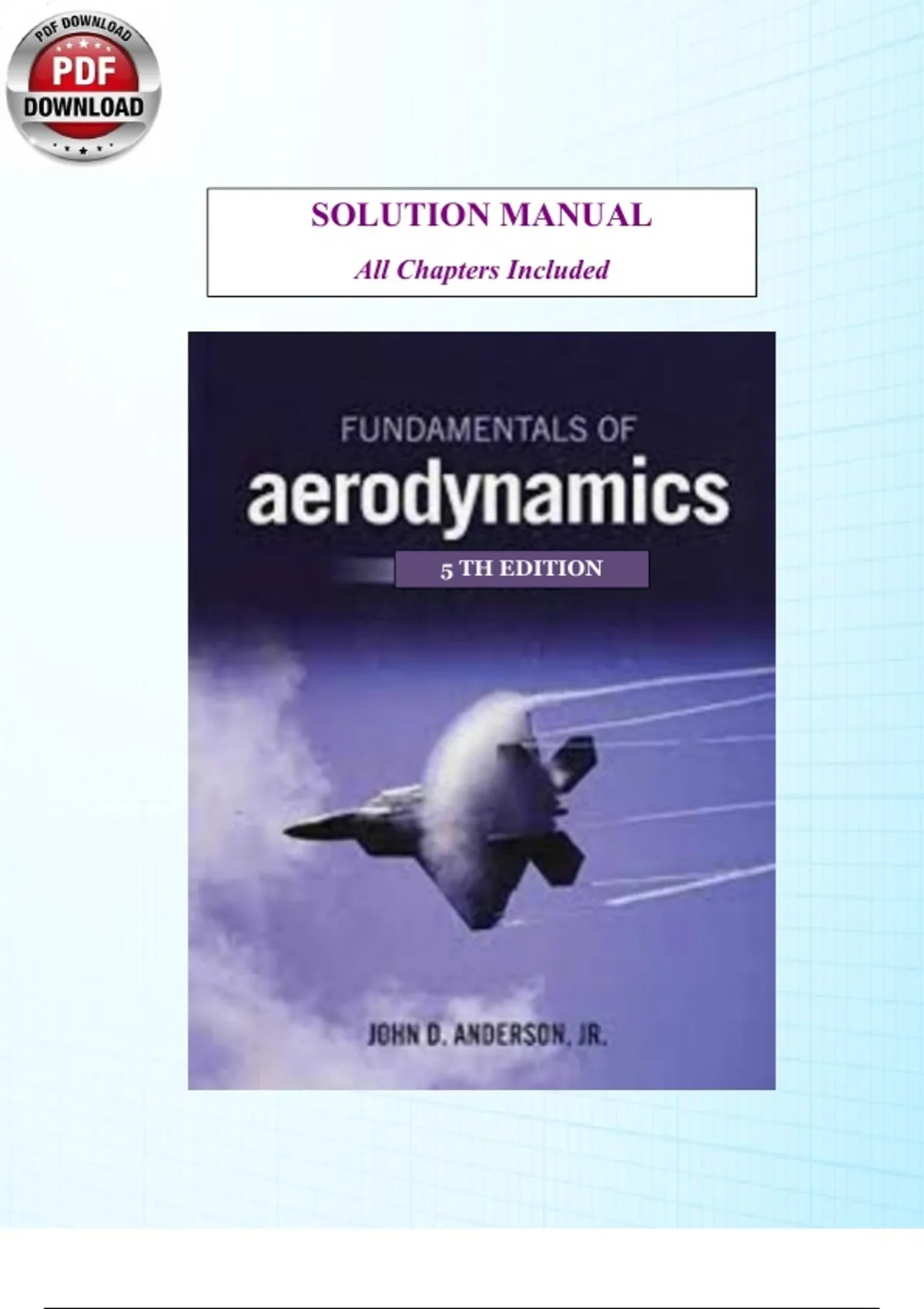 Fundamentals of Aerodynamics – Instructor’s Solutions Manual (John D. Anderson Jr.) | Complete Worked Solutions | 5th Edition Boost your understanding of aerodynamics with this fully worked, step-by-step solutions manual designed to support students taking courses in aerospace engineering, mechanical engineering, and fluid dynamics. Whether you’re preparing for exams, reviewing homework, or strengthening your grasp of core aerodynamic concepts, this guide provides clear reasoning and detailed problem-solving strategies aligned with the 5th Edition of the textbook. What This Study Resource Offers ️ Complete worked solutions for all major problem sets ️ Thorough explanations to help you understand each step ️ Ideal for exam prep, assignments, quizzes, and self-study ️ Covers key areas such as: Compressible & incompressible flow Airfoil and wing theory Shock waves Boundary layers Wind tunnel principles Gas dynamics fundamentals Who This Is Perfect For Aerospace engineering students Mechanical engineering majors Anyone taking courses in aerodynamics or fluid mechanics Learners who want to improve accuracy and confidence in solving complex problems Why Students Love This Resource This solutions manual helps you: Reduce study time Understand the logic behind each solution Build stronger conceptual foundations Improve performance on assignments and exams