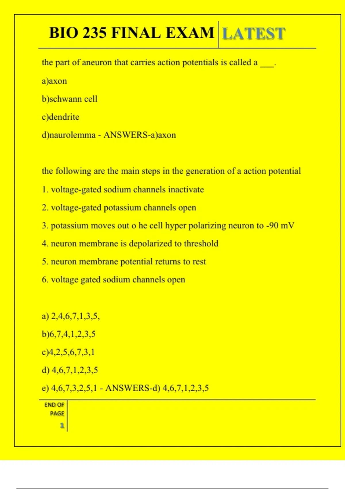 , BIO 235 FINAL EXAM LATEST