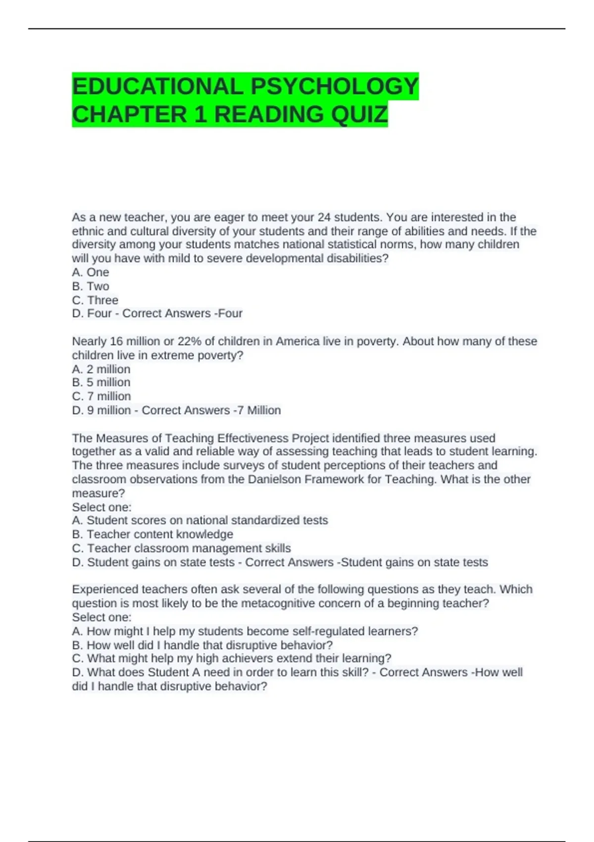 D. 9 million - Correct Answers -7 Million