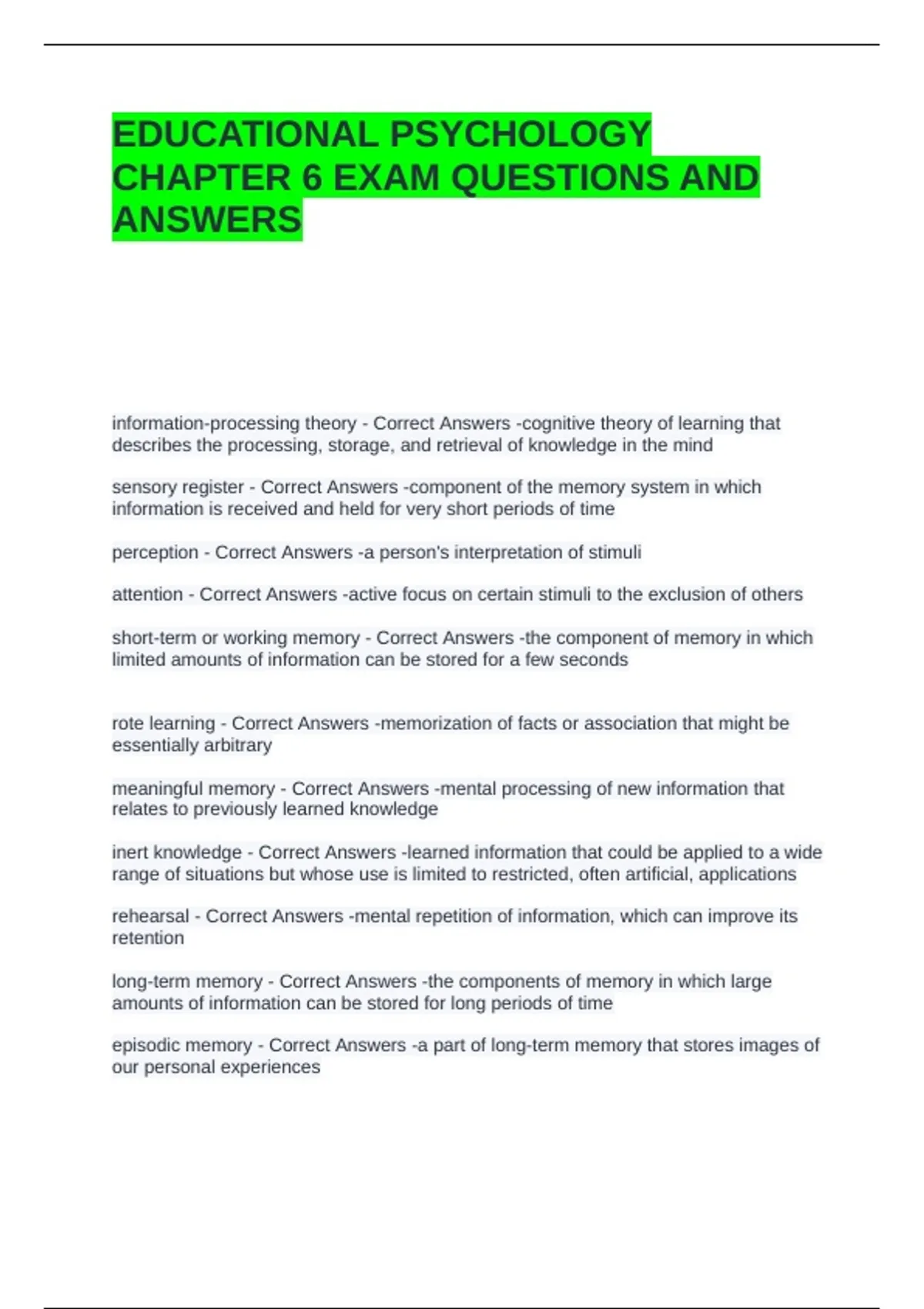 EDUCATIONAL PSYCHOLOGY CHAPTER 6 EXAM QUESTIONS AND ANSWERS