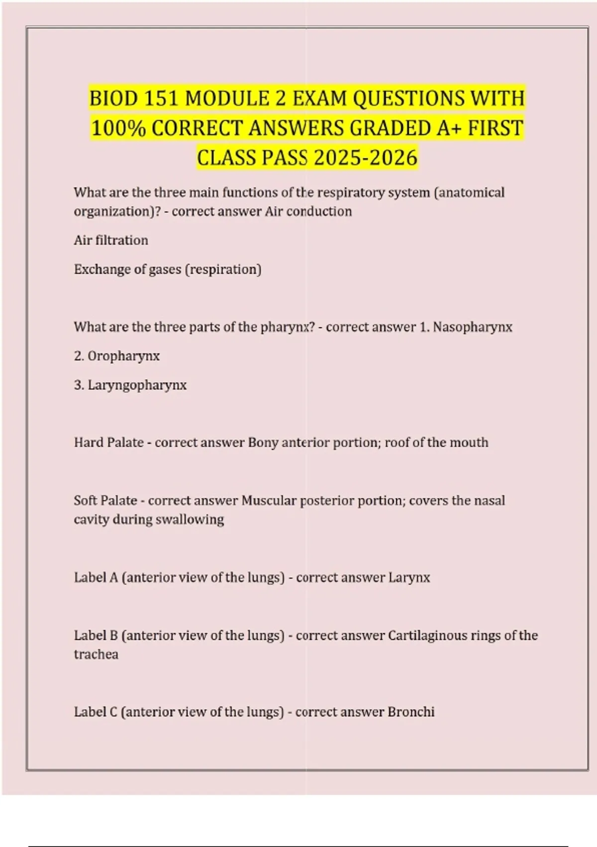 A PACKAGE DEAL FOR BIOD 151 EXAM 3 QUESTIONS WITH 100% APPROVED CORRECT ANSWERS GRADED A+ 2025-2026 LATEST VERSION