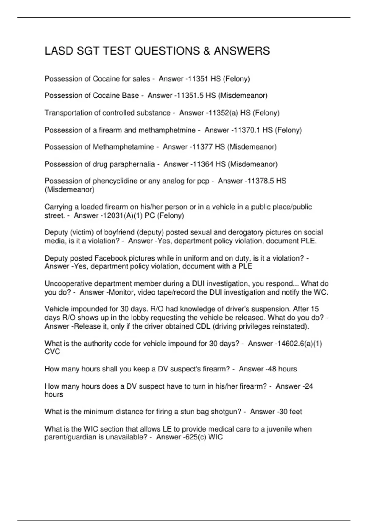 LASD SGT TEST QUESTIONS & ANSWERS