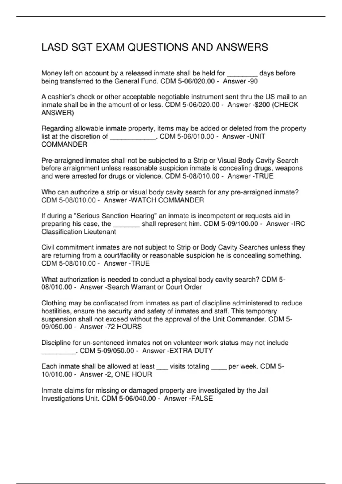 LASD SGT EXAM QUESTIONS AND ANSWERS