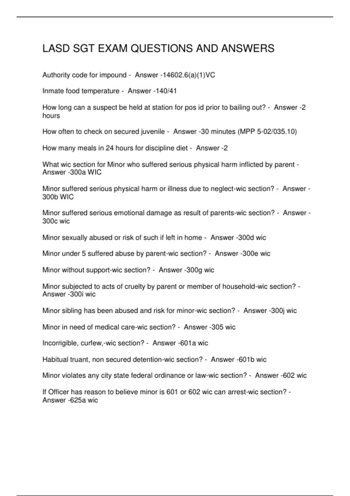 LASD SGT EXAM QUESTIONS AND ANSWERS