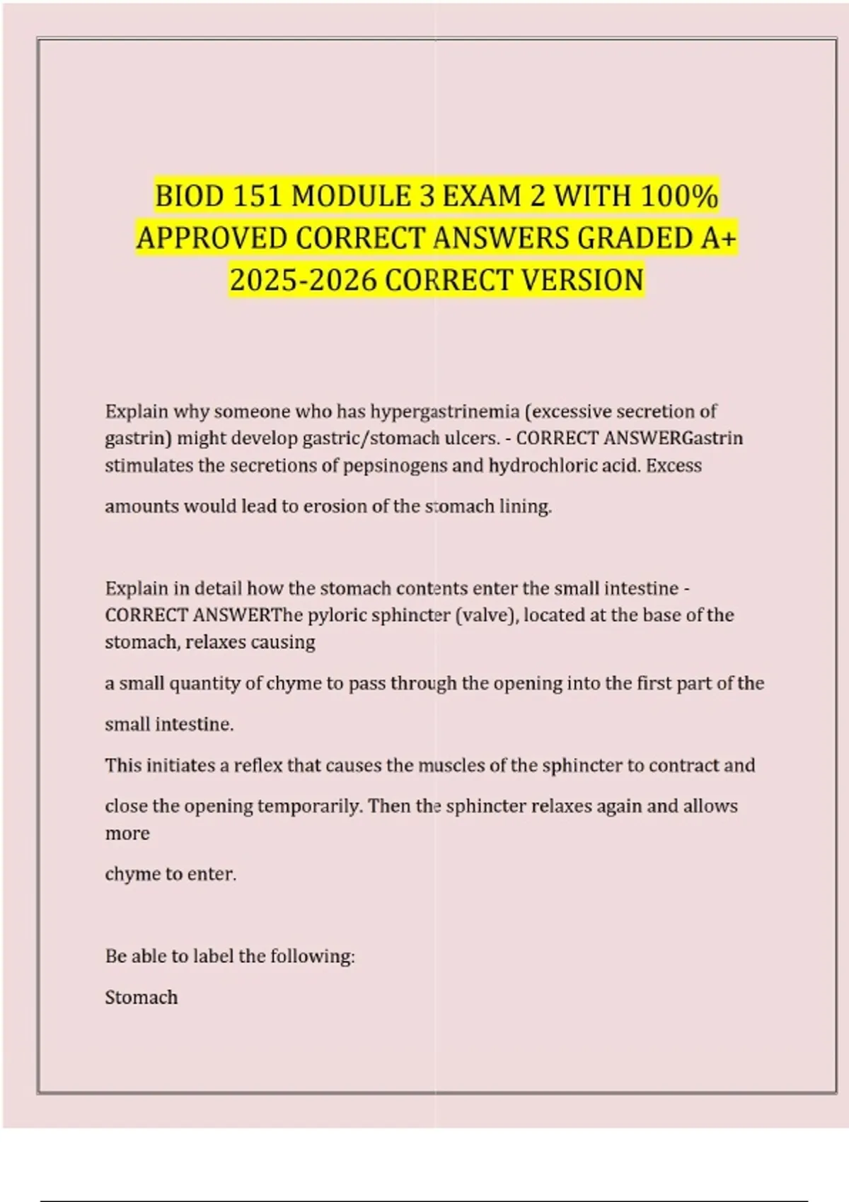 BIOD 151 MODULE 3 EXAM 2 WITH 100% APPROVED CORRECT ANSWERS GRADED A+ CORRECT VERSION