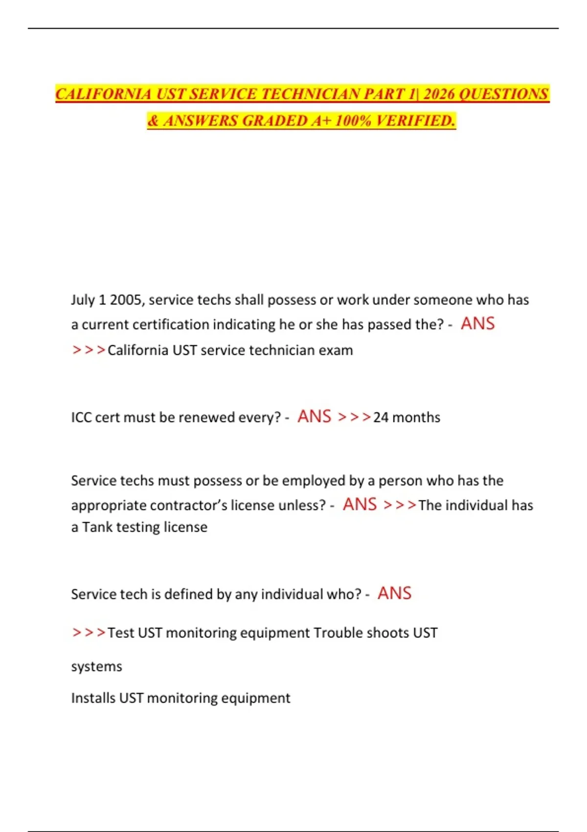 >>>California UST service technician exam