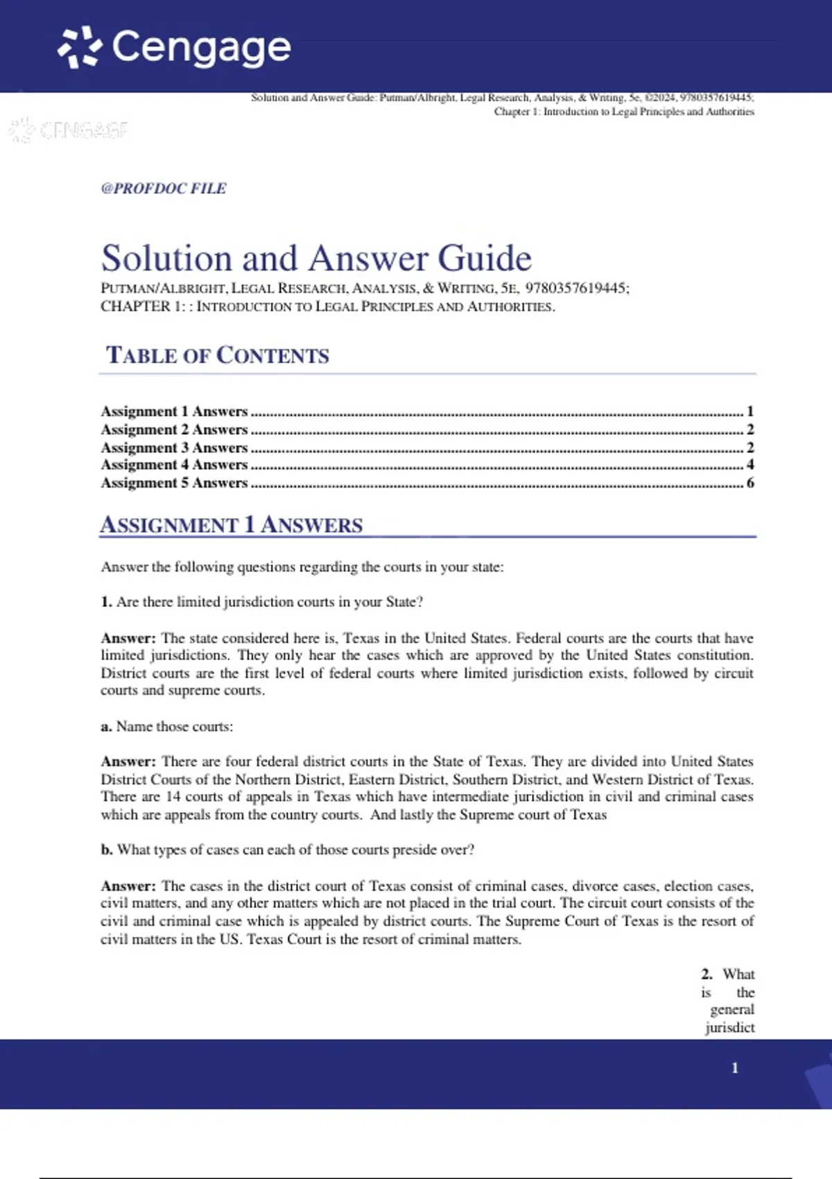 , Solution and Answer Guide: Putman/Albright, Legal Research, Analysis, & Writing, 5e, ©2024, 9780357619445;