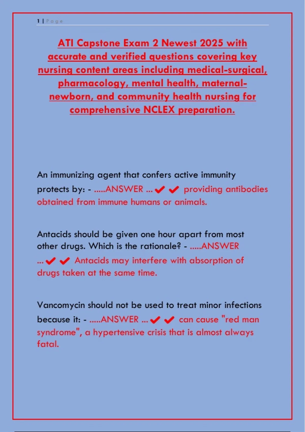 ATI Capstone Exam 2 2025: Verified Practice Questions & Key Content Review