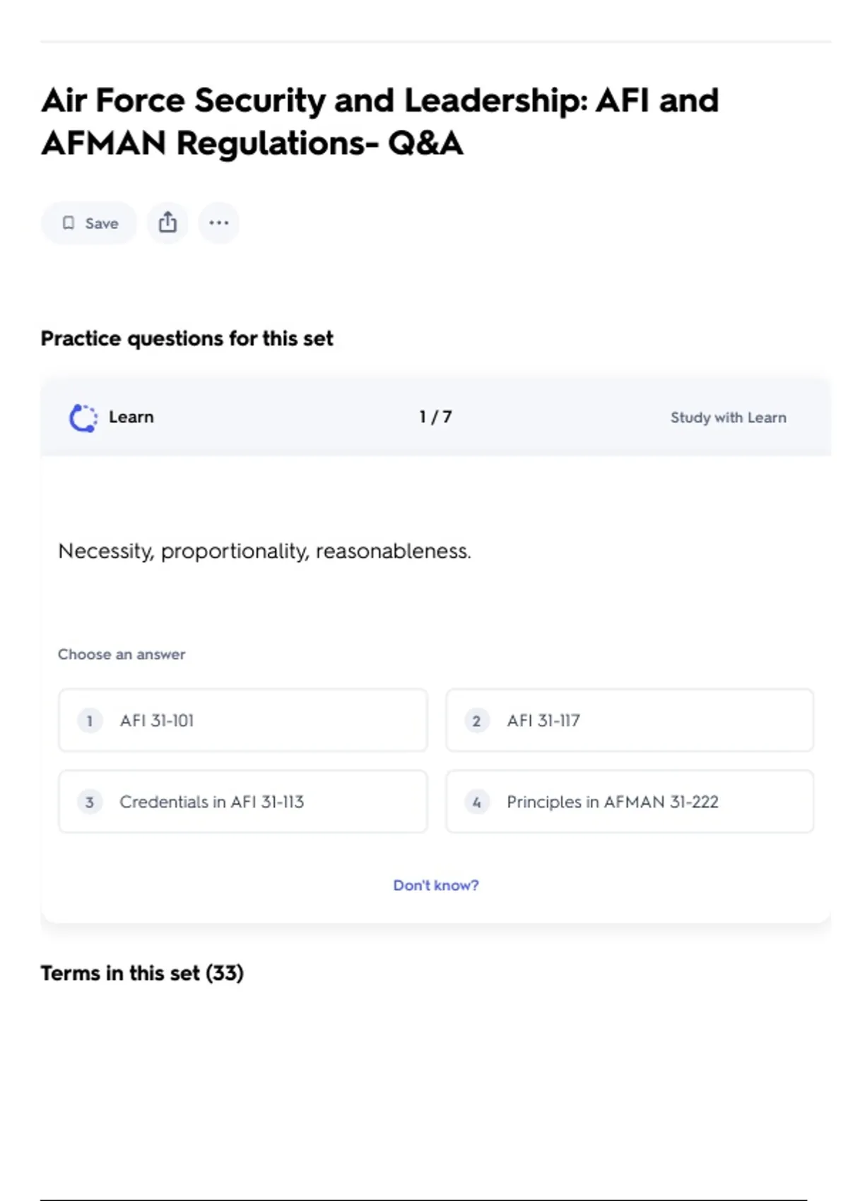 Air Force Security and Leadership: AFI and AFMAN Regulations- Q&A