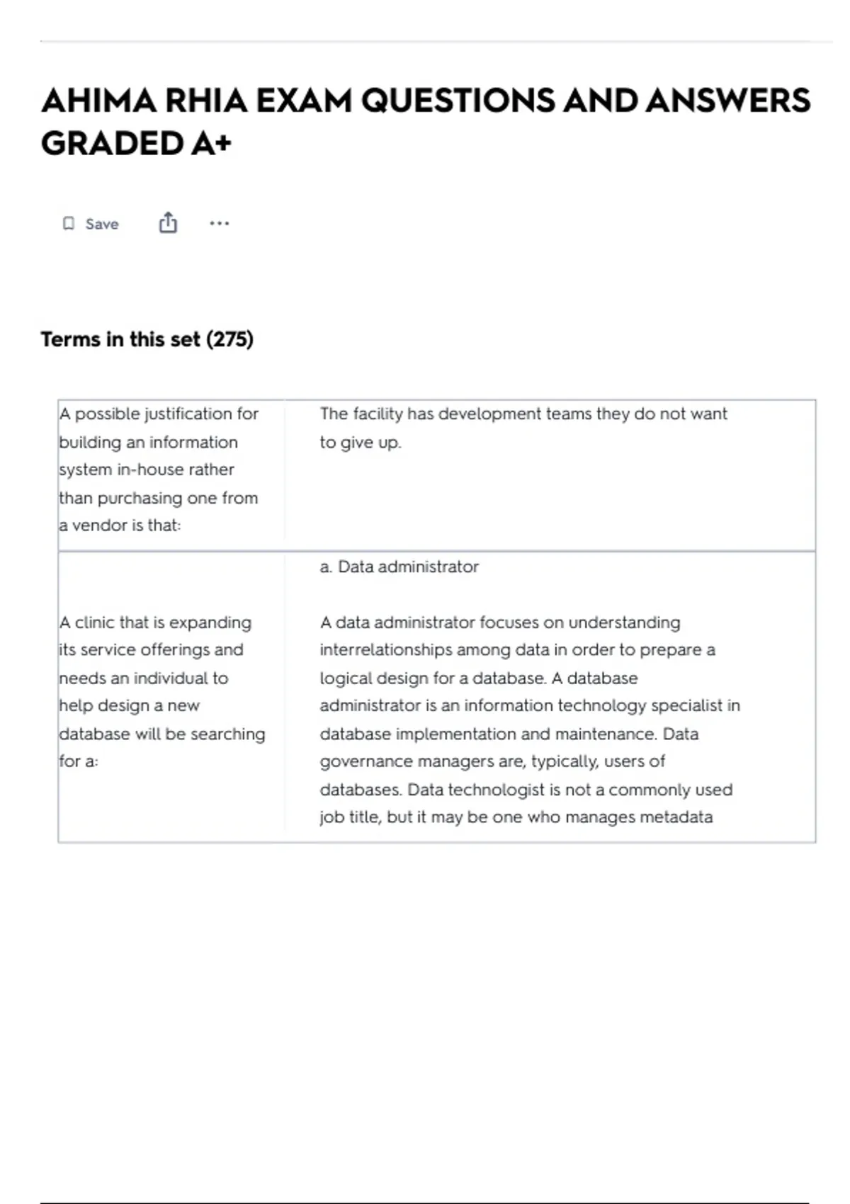 AHIMA RHIA EXAM QUESTIONS AND ANSWERS
