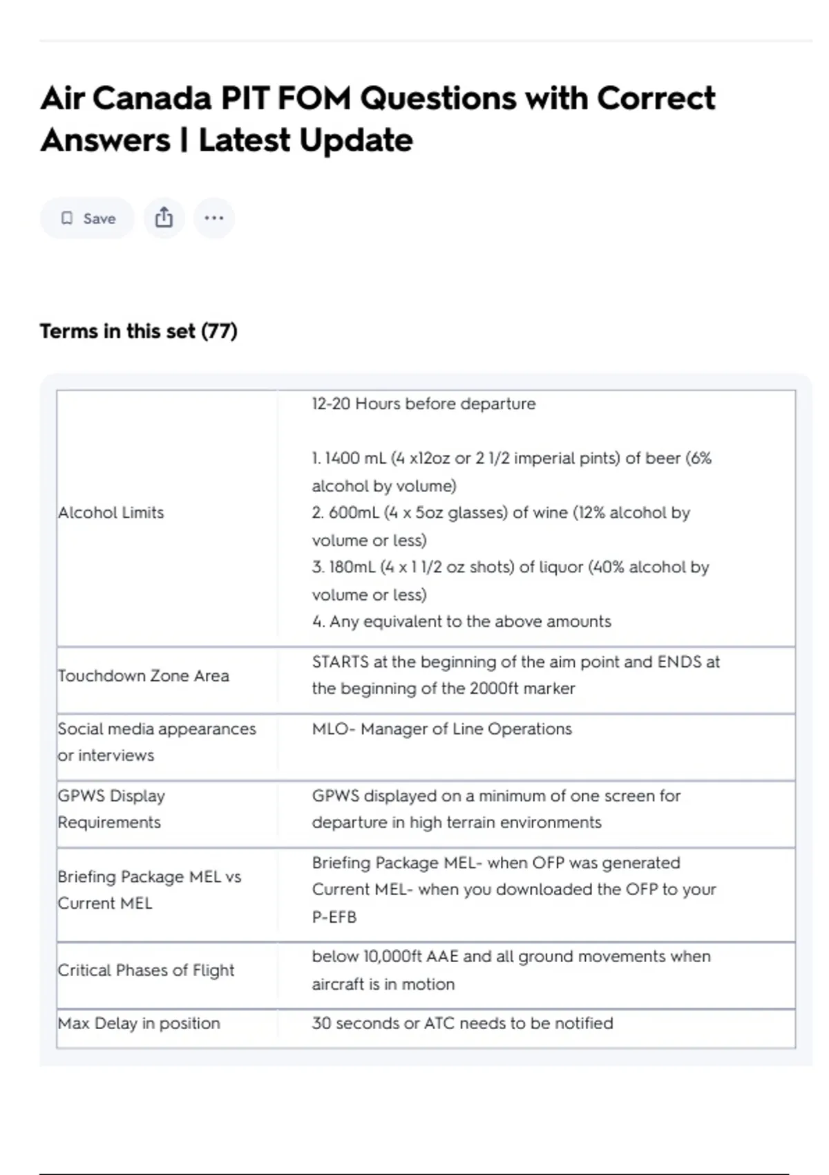 Air Canada PIT FOM Questions with Correct