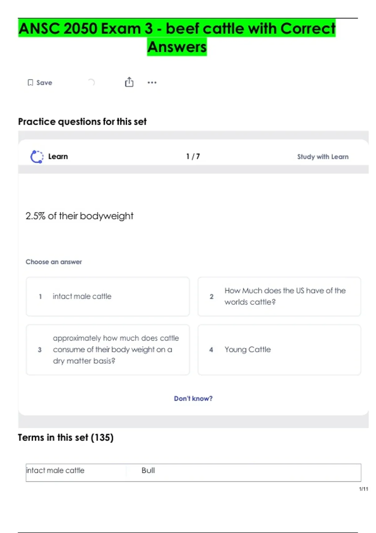 ANSC 2050 Exam 3 - beef cattle with Correct Answers