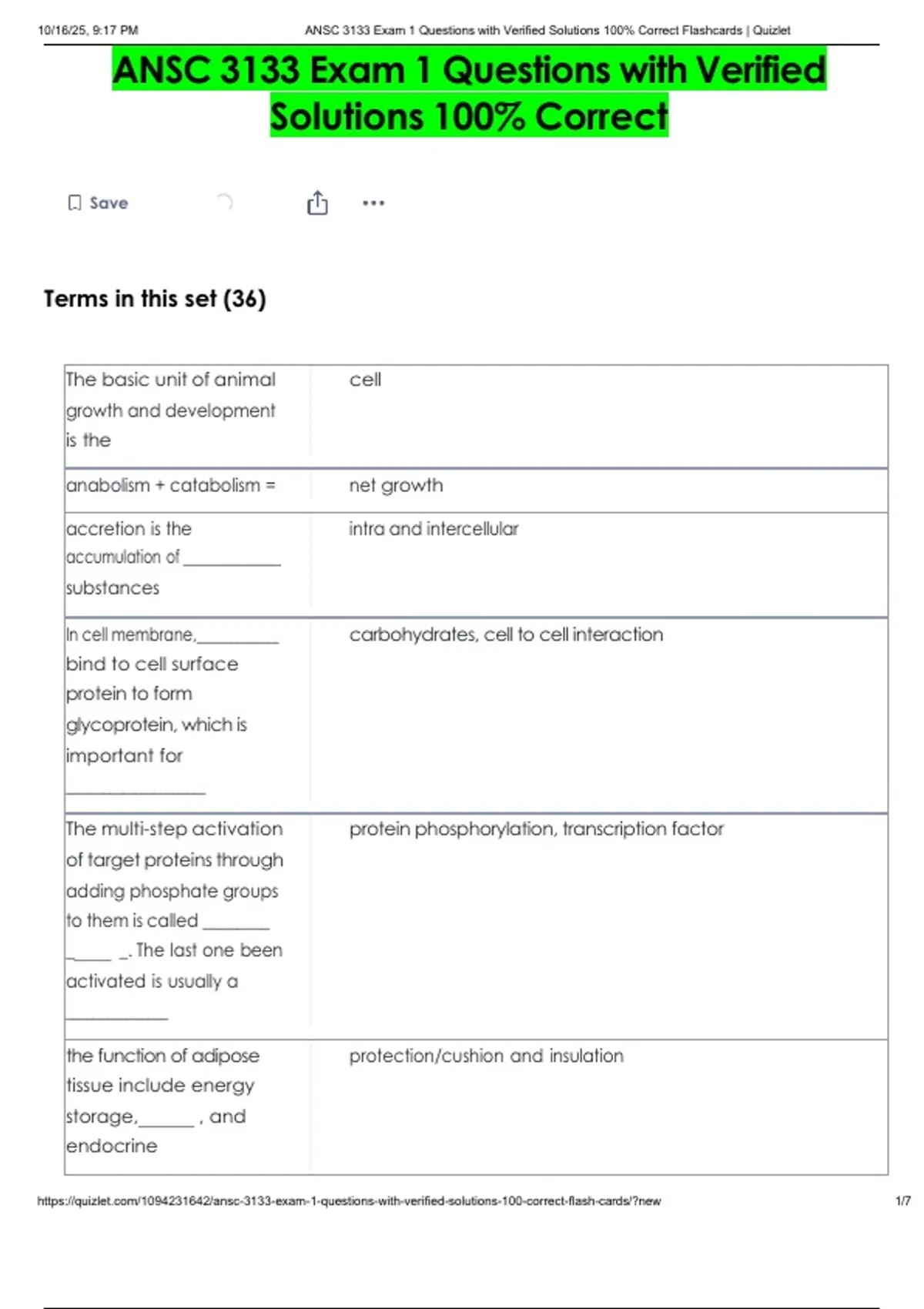 10/16/25, 9:17 PM ANSC 3133 Exam 1 Questions with Verified Solutions 100% Correct Flashcards | Quizlet