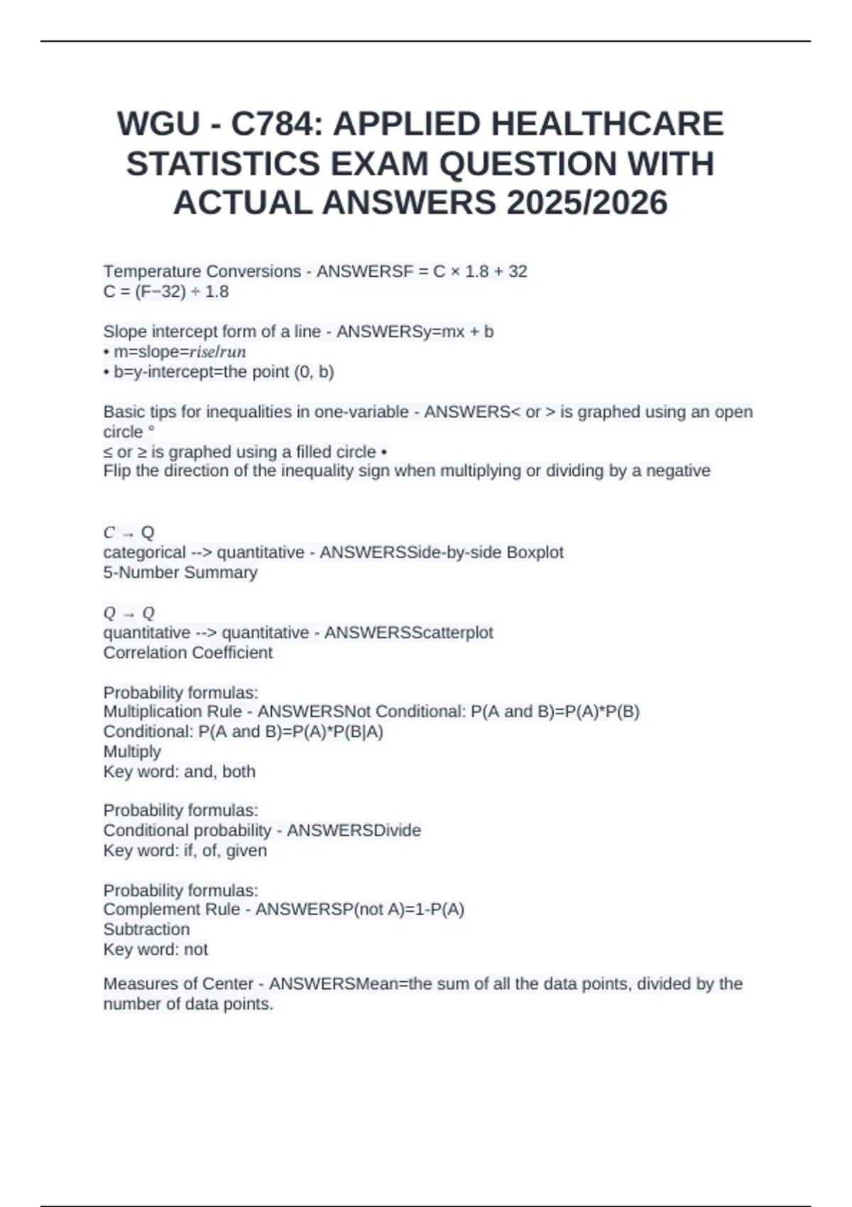 Temperature Conversions - ANSWERSF = C × 1.8 + 32