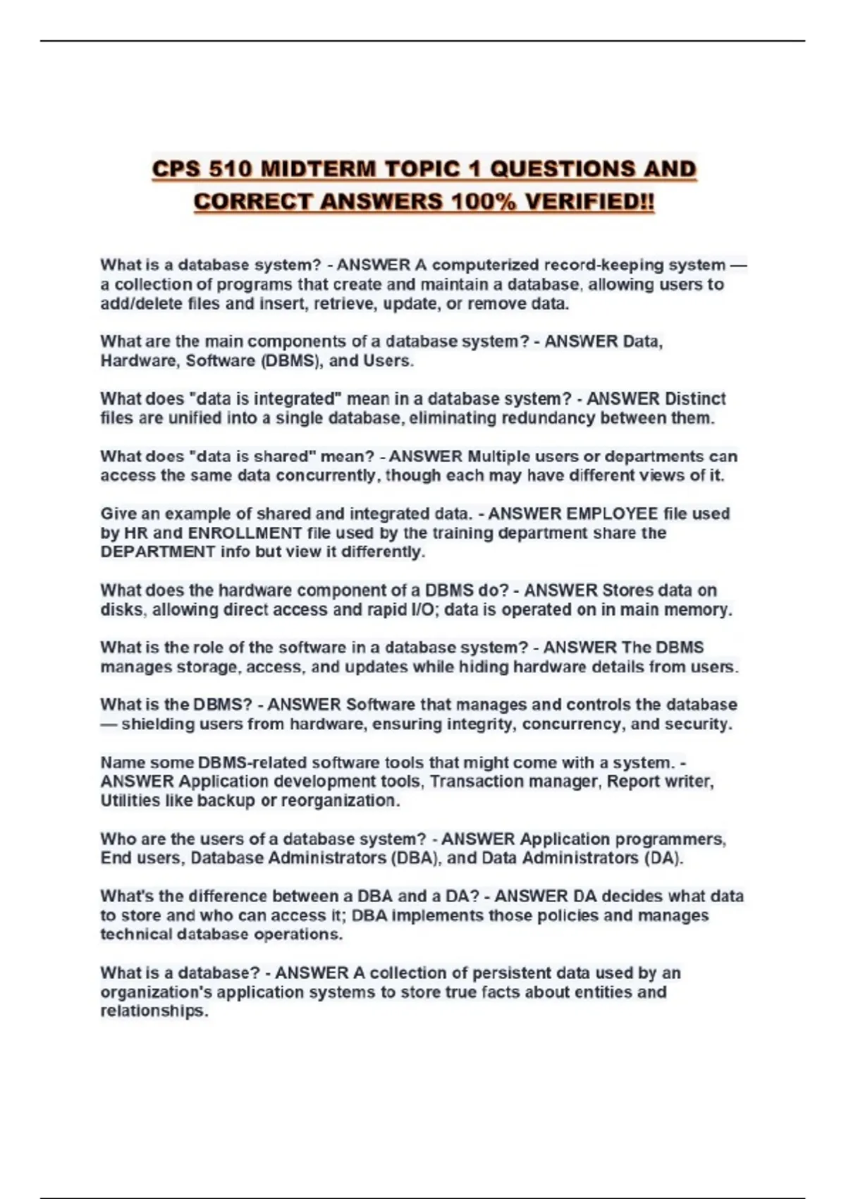CPS 510 MIDTERM TOPIC 1 QUESTIONS AND CORRECT ANSWERS 100% VERIFIED!!...