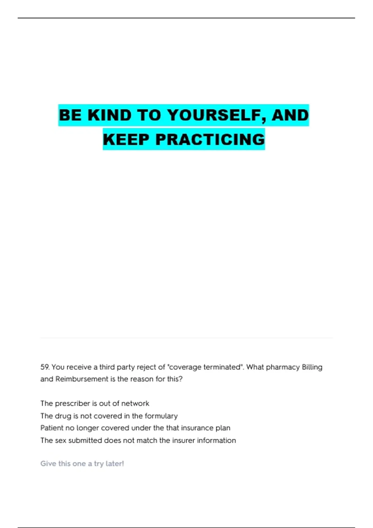 59. You receive a third party reject of "coverage terminated". What pharmacy Billing