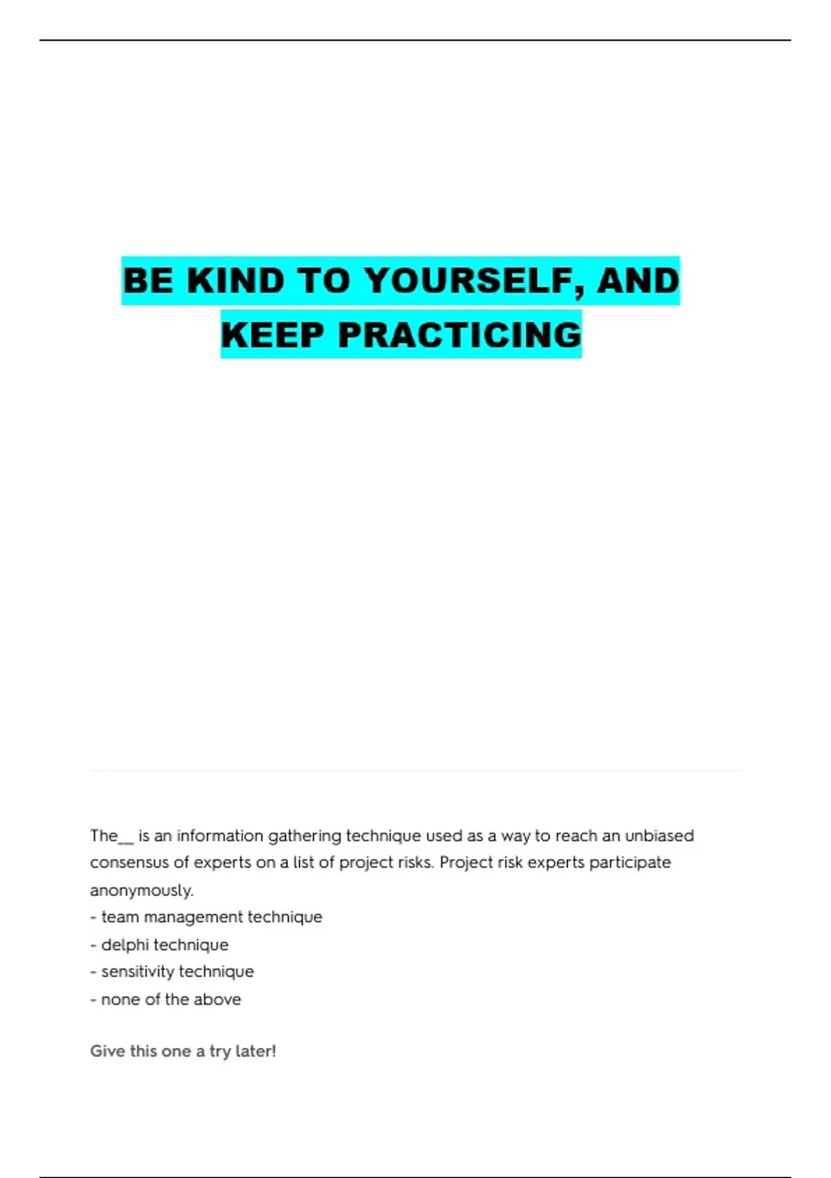 consensus of experts on a list of project risks. Project risk experts participate