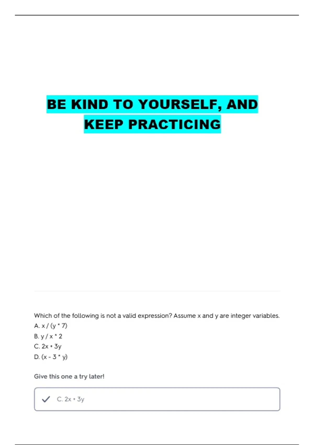 Which of the following is not a valid expression? Assume x and y are integer variables.