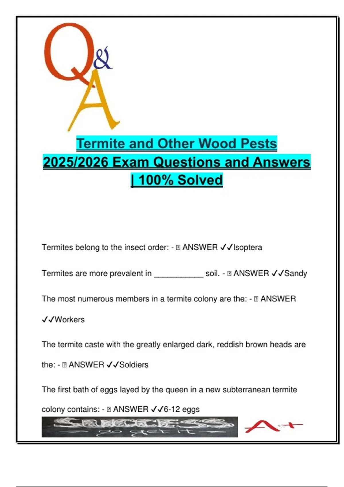 Termites belong to the insect order: - 🧠 ANSWER ✔✔Isoptera