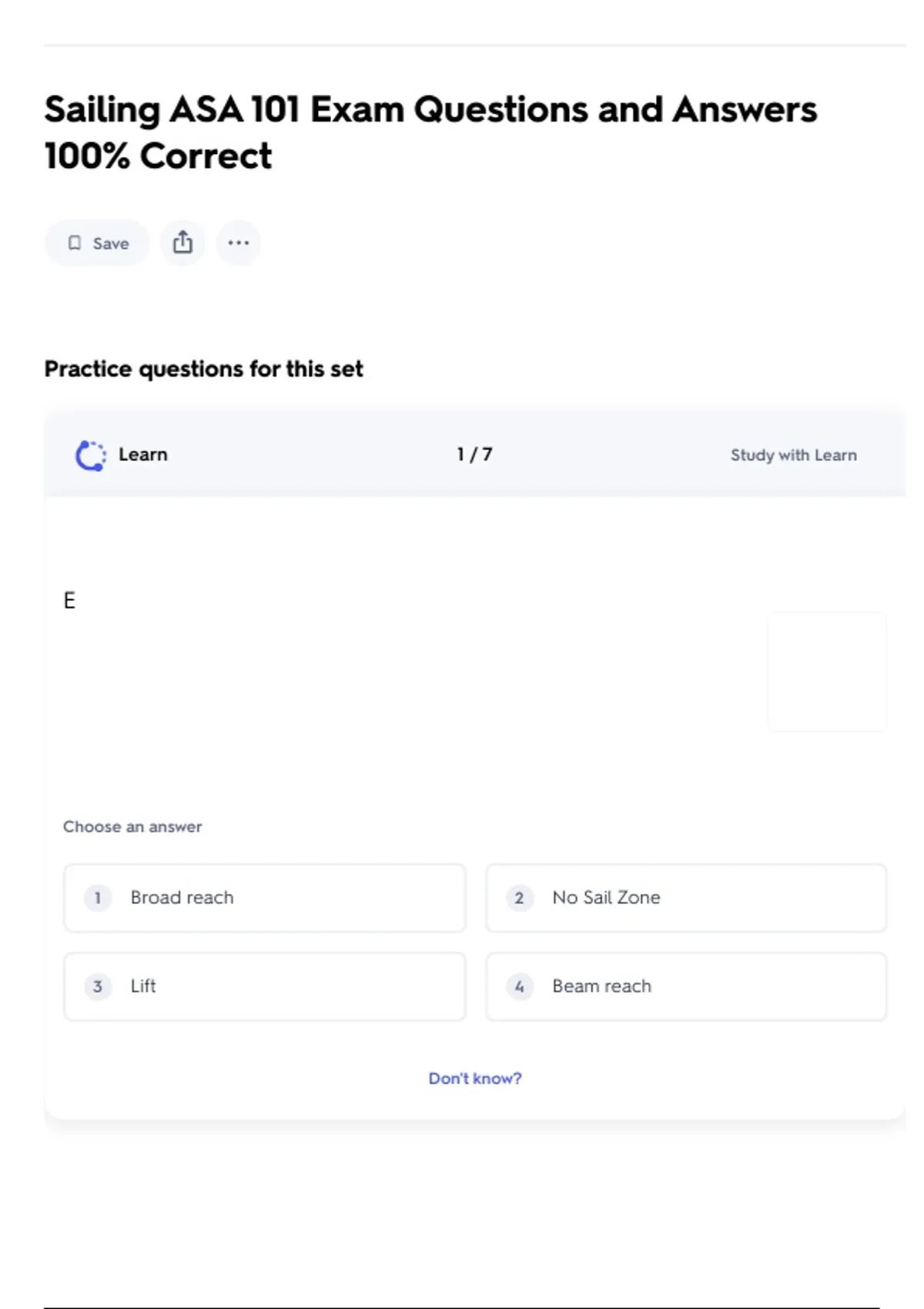 Sailing ASA 101 Exam Questions and Answers 100% Correct