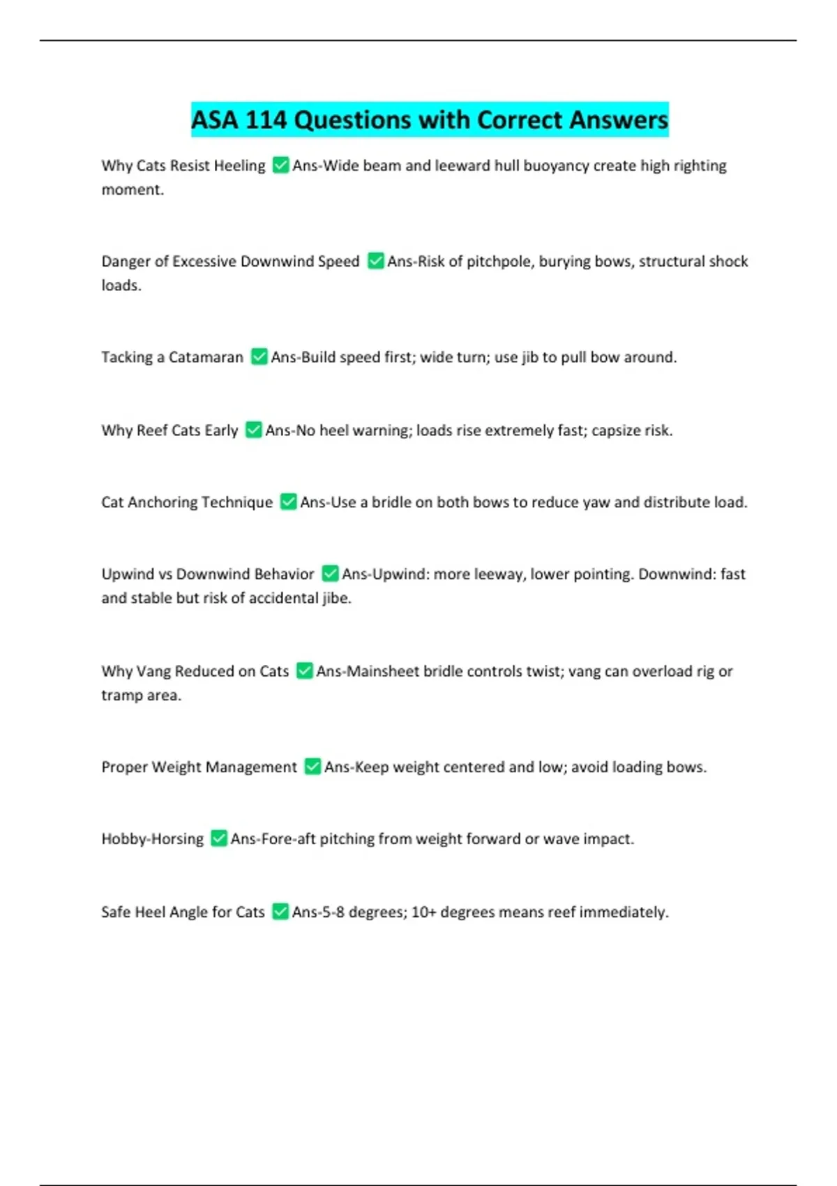 ASA 114 Questions with Correct Answers