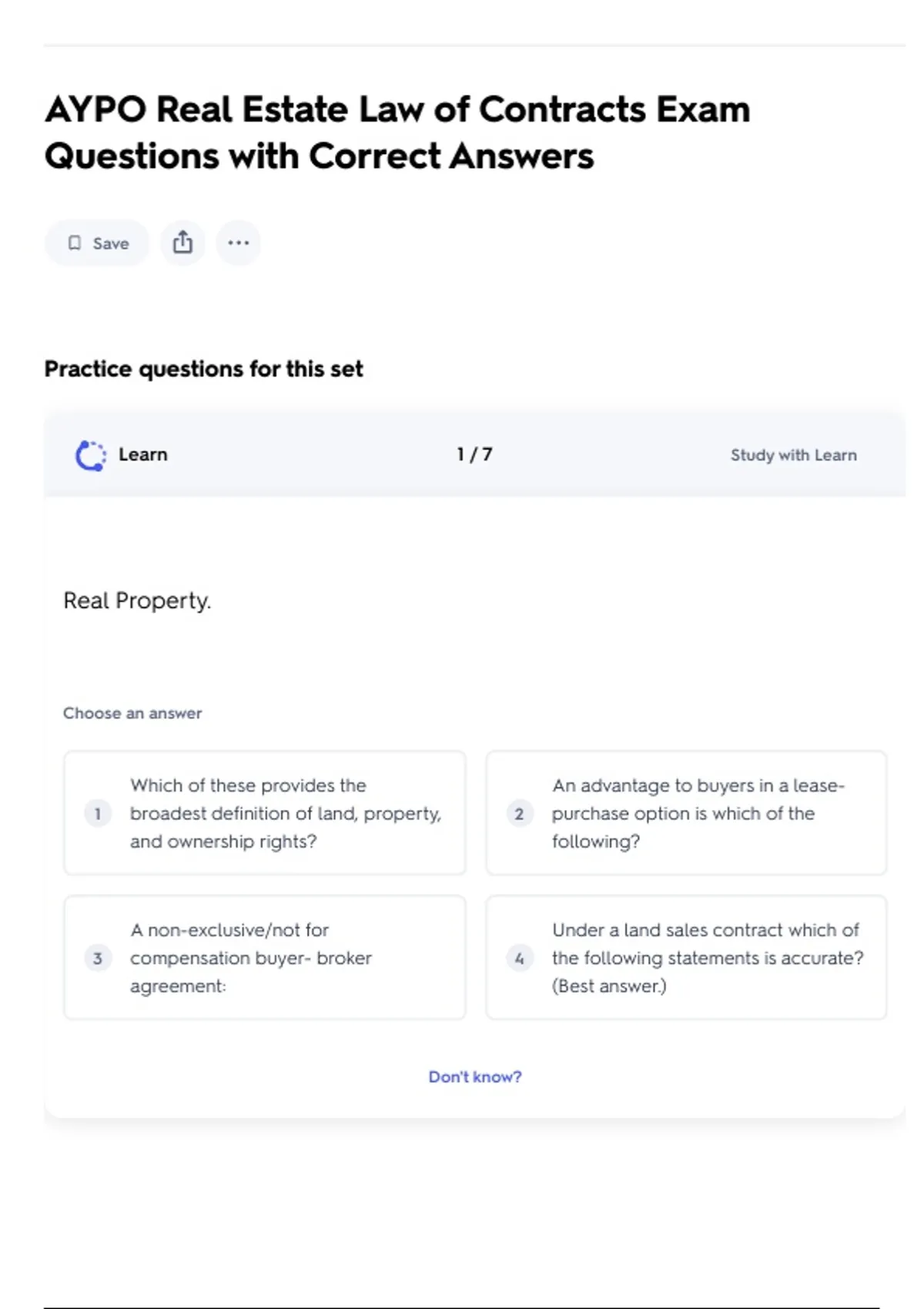 AYPO Real Estate Law of Contracts Exam
