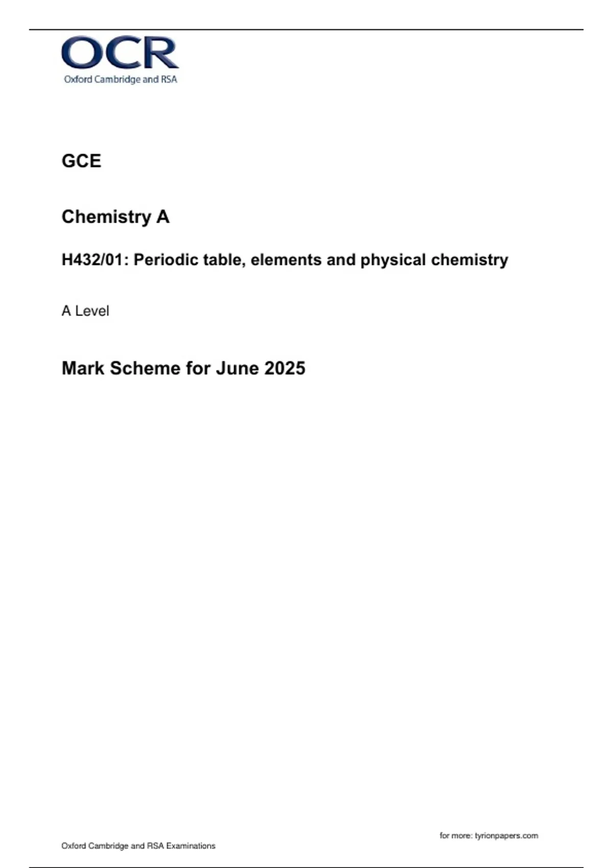 OCR A LEVEL 2025 CHEMISTRY A Paper 1 MS + free study guide at end