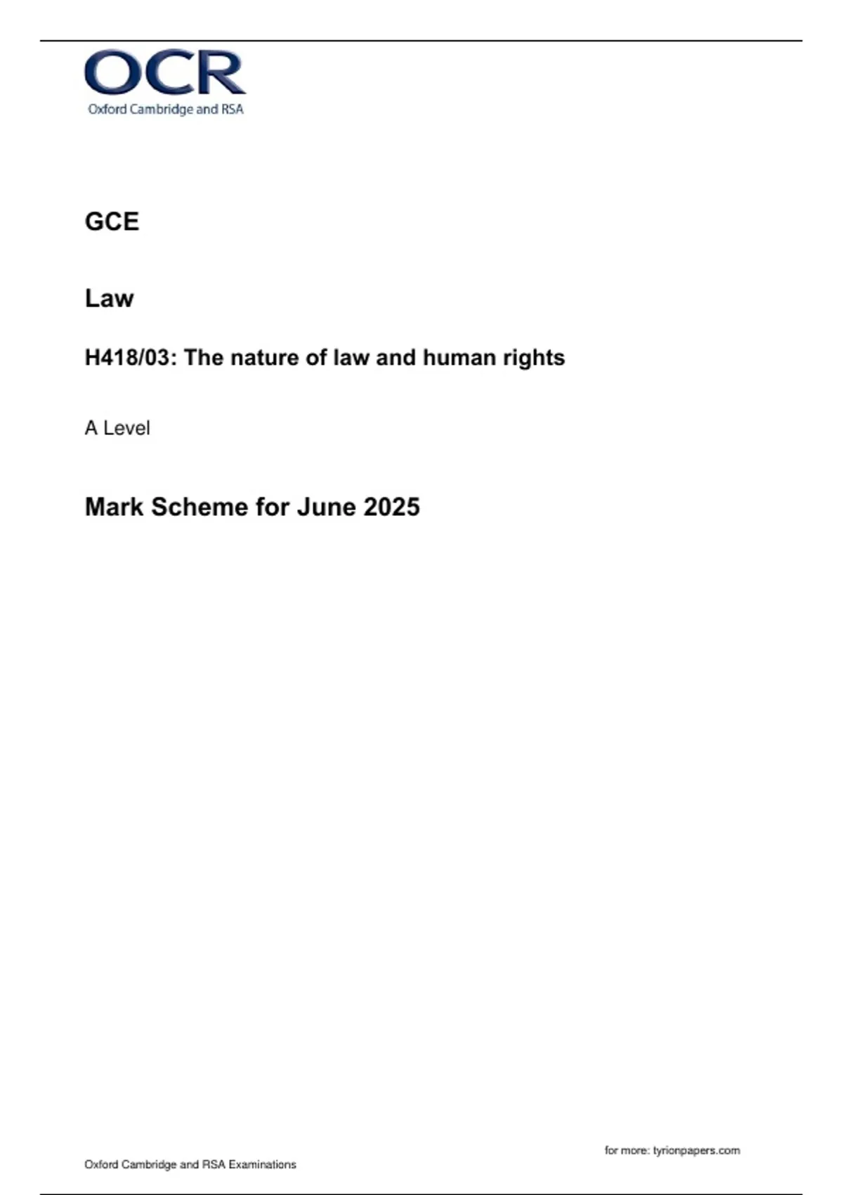OCR A LEVEL 2025 LAW Paper 3 MS + free study guide at end