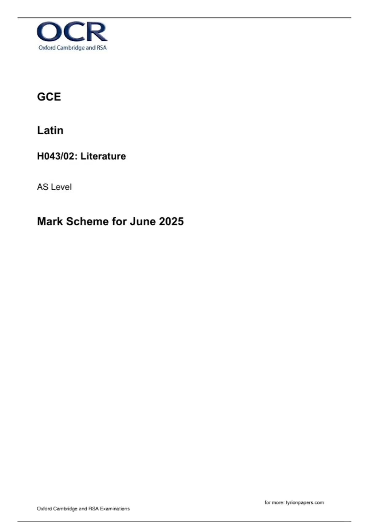 OCR AS LEVEL 2025 LATIN Paper 2 MS + free study guide at end