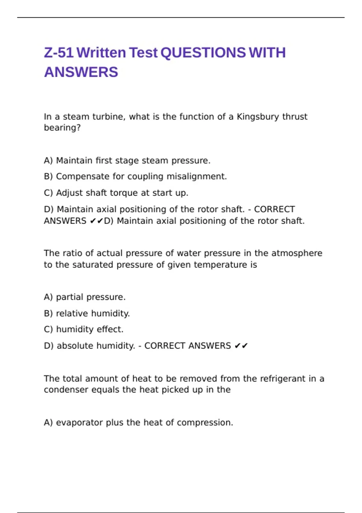Z-51 Written Test QUESTIONS WITH ANSWERS