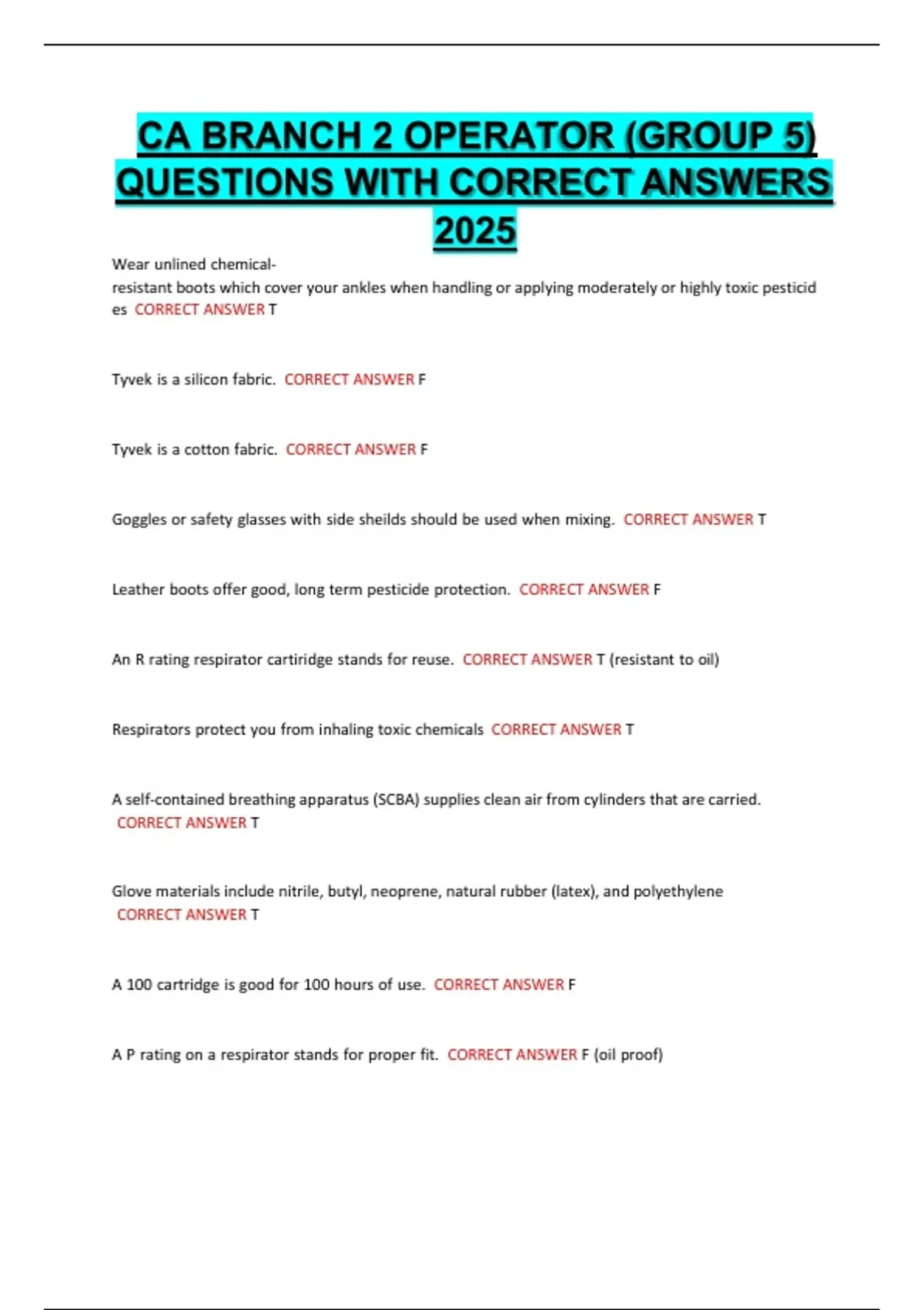 CA BRANCH 2 OPERATOR (GROUP 5) QUESTIONS WITH CORRECT ANSWERS 2025.