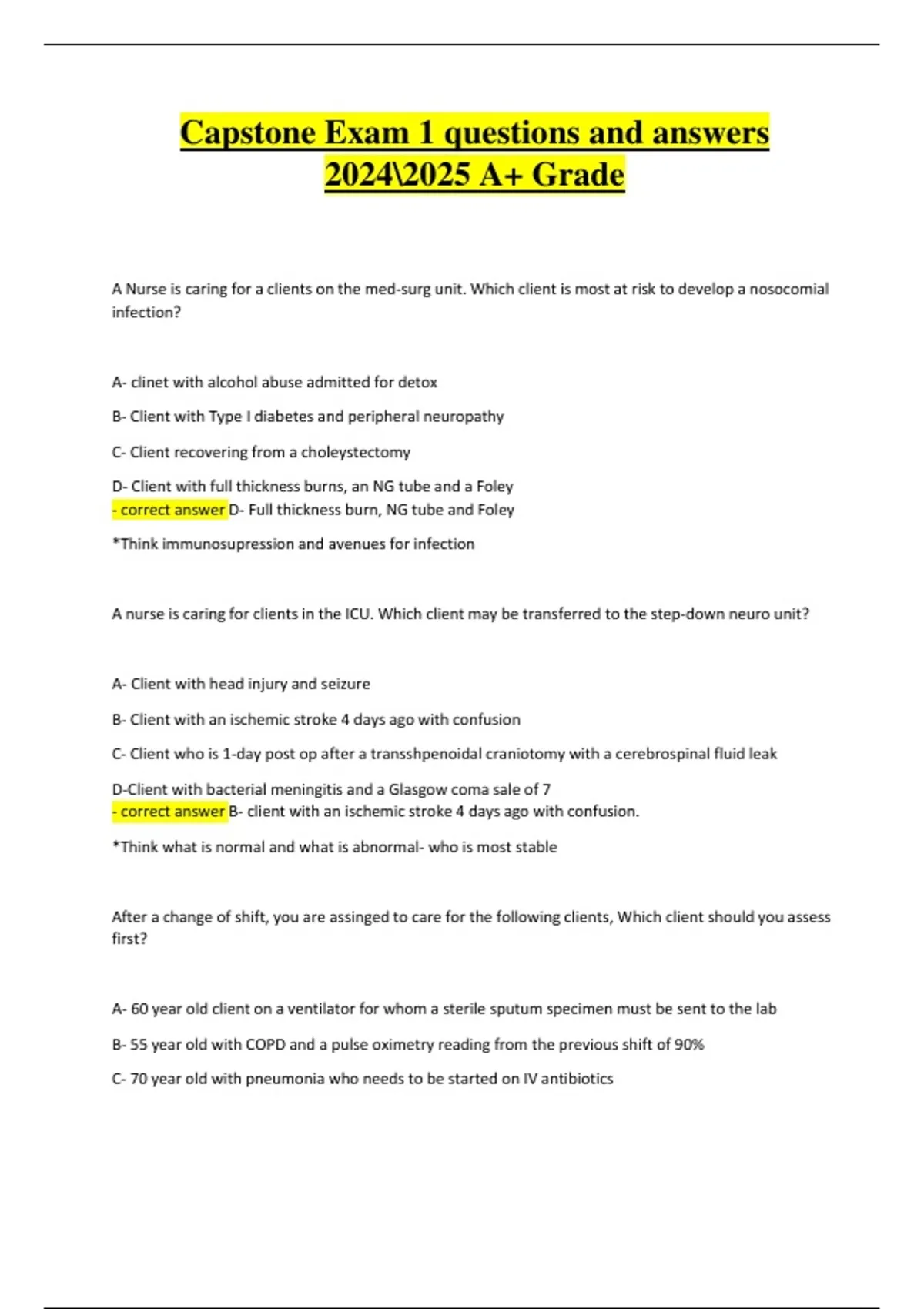 ATI Capstone Exam 1 | Verified Questions & Correct Detailed Answers | Latest A+ Grade | 2024/2025 Edition