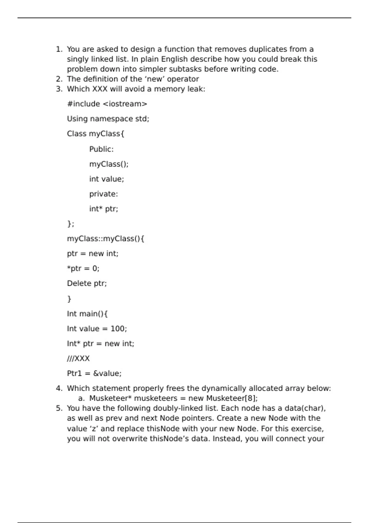 3. Which XXX will avoid a memory leak: