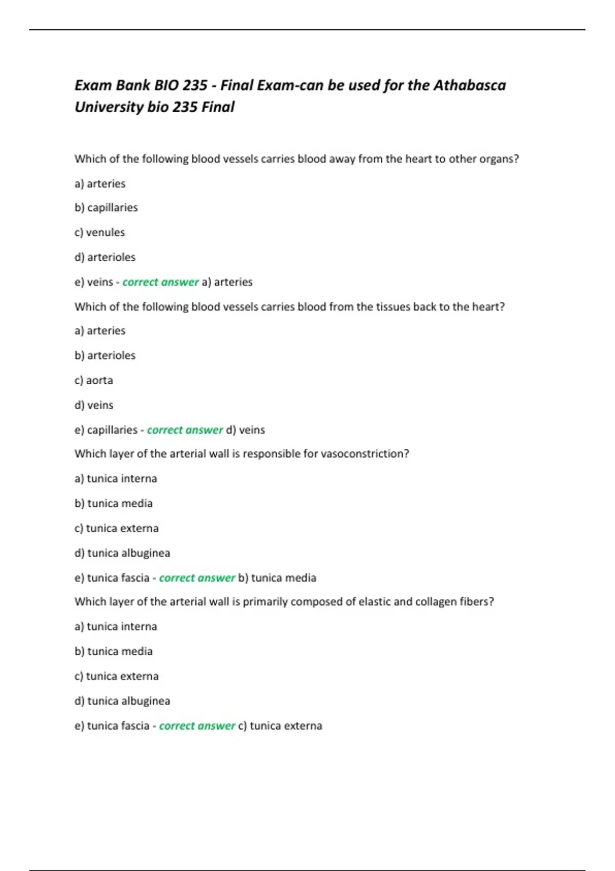 e) veins - correct answer a) arteries