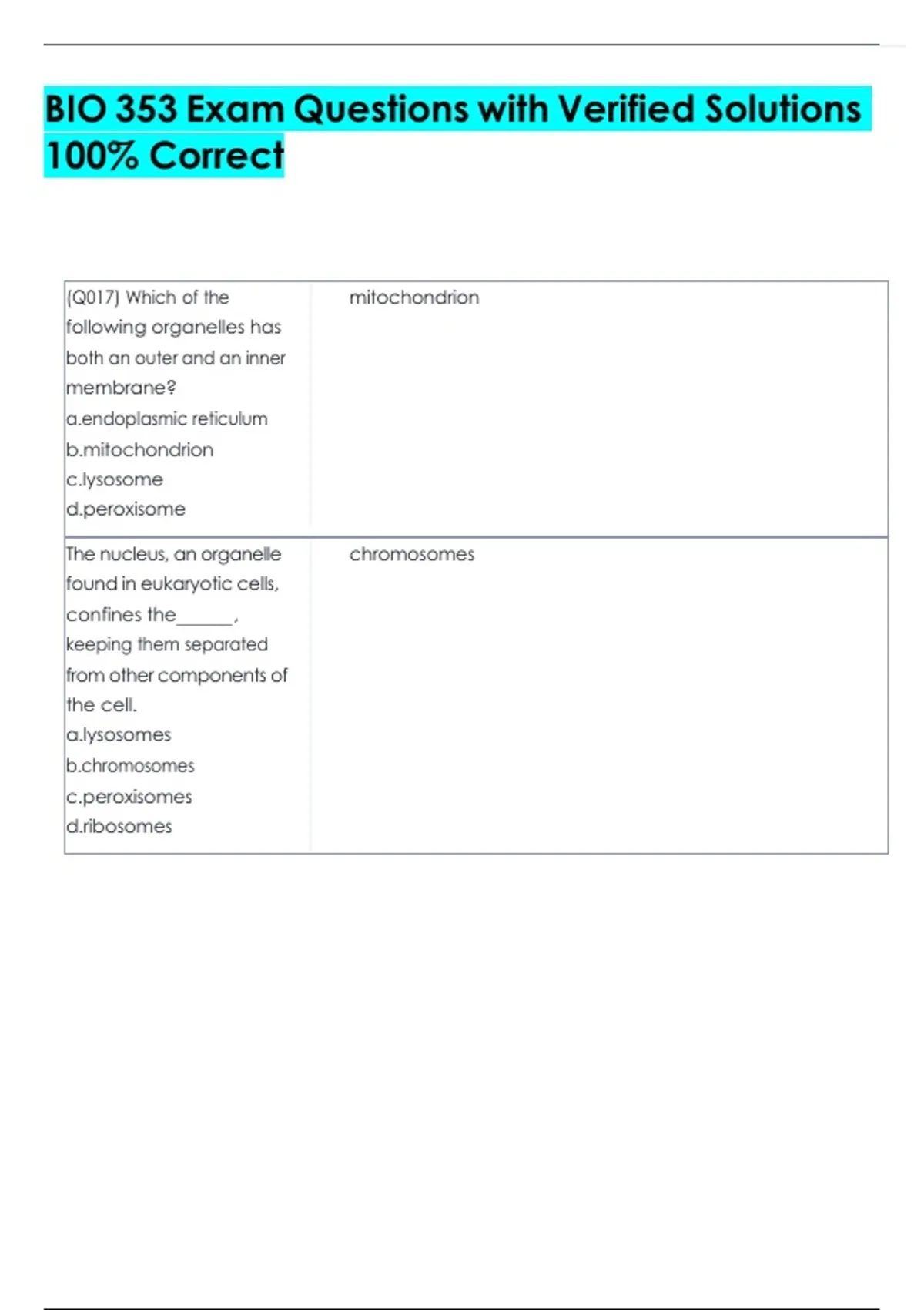 BIO 353 Exam Questions with Verified Solutions