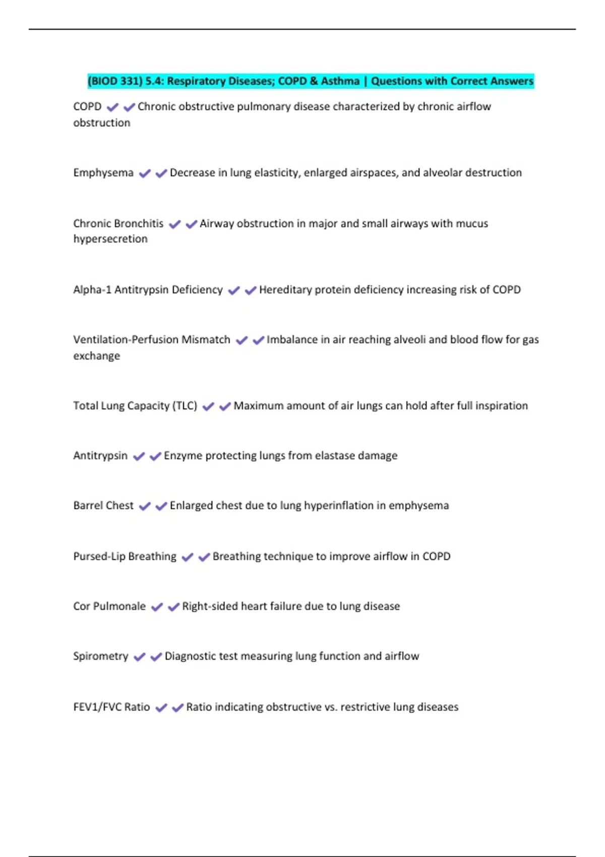 (BIOD 331) 5.4: Respiratory Diseases; COPD & Asthma | Questions with Correct Answers